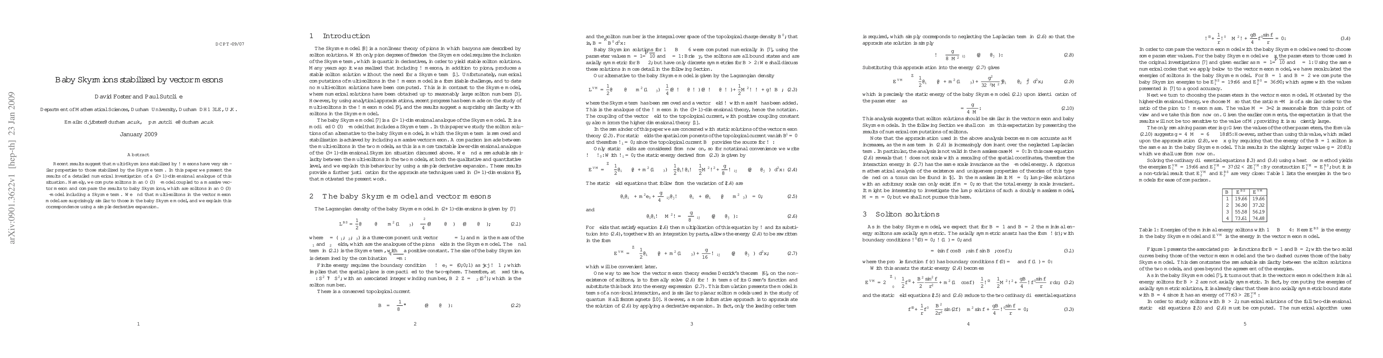 Recent results suggest that multi-Skyrmions stabilized by omega mesons have very similar properties to those stabilized by the Skyrme term. In this paper we present the results of a detailed numerical investigation of a (2+1)-dimensional analogue of this situation. Namely, we compute solitons in an O(3) sigma-model coupled to a massive vector meson and compare the results to baby Skyrmions, which are solitons in an O(3) sigma-model including a Skyrme term. We find that multi-solitons in the vector meson model are surprisingly similar to those in the baby Skyrme model, and we explain this correspondence using a simple derivative expansion.