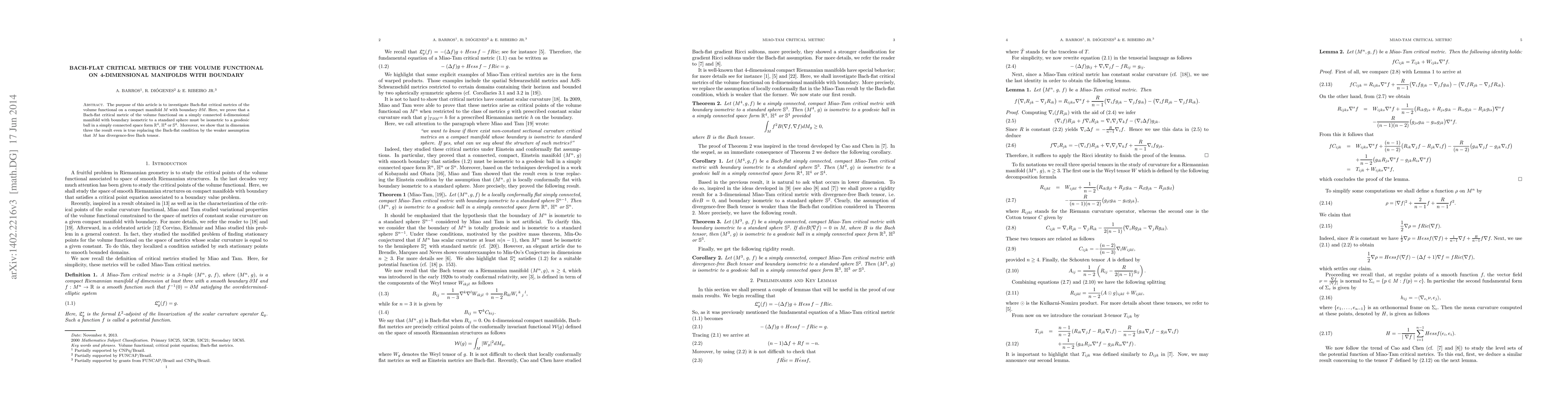 This paper explores Bach-flat critical metrics of the volume functional on 4-dimensional manifolds with boundary, proving that such metrics on simply connected 4-manifolds with boundary isometric to a sphere are isometric to geodesic balls in $\Bbb{R}^{4}$, $\Bbb{H}^{4}$, or $\Bbb{S}^{4}$. It also extends the result to 3-dimensional manifolds with a divergence-free Bach tensor.