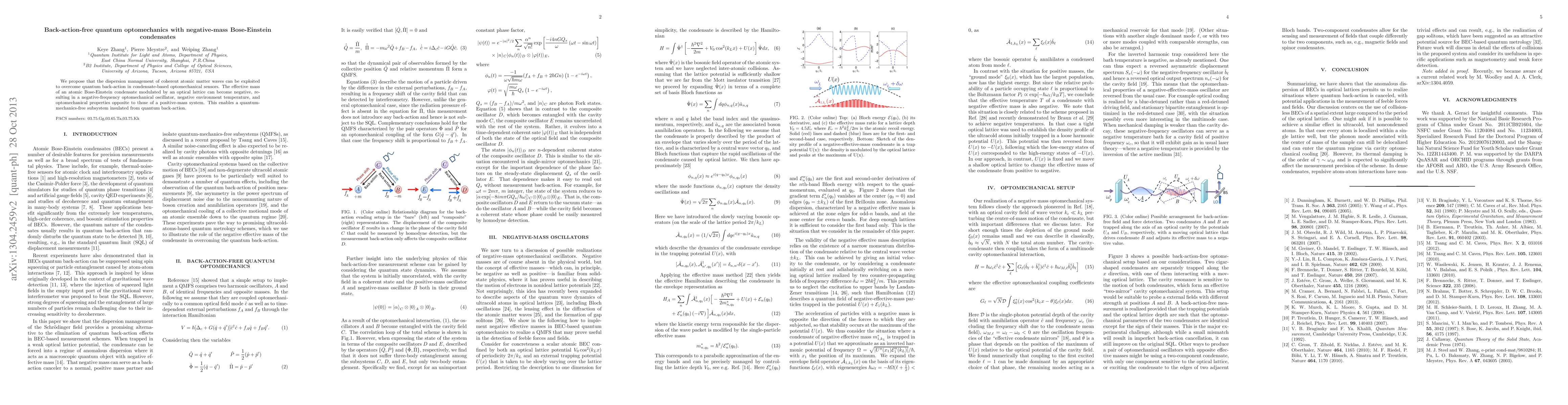 This paper proposes a method to overcome quantum back-action in optomechanical sensors by using negative-mass Bose-Einstein condensates, achieved through dispersion management of coherent atomic matter waves, which results in a negative-frequency optomechanical oscillator and a quantum-mechanics-free subsystem.