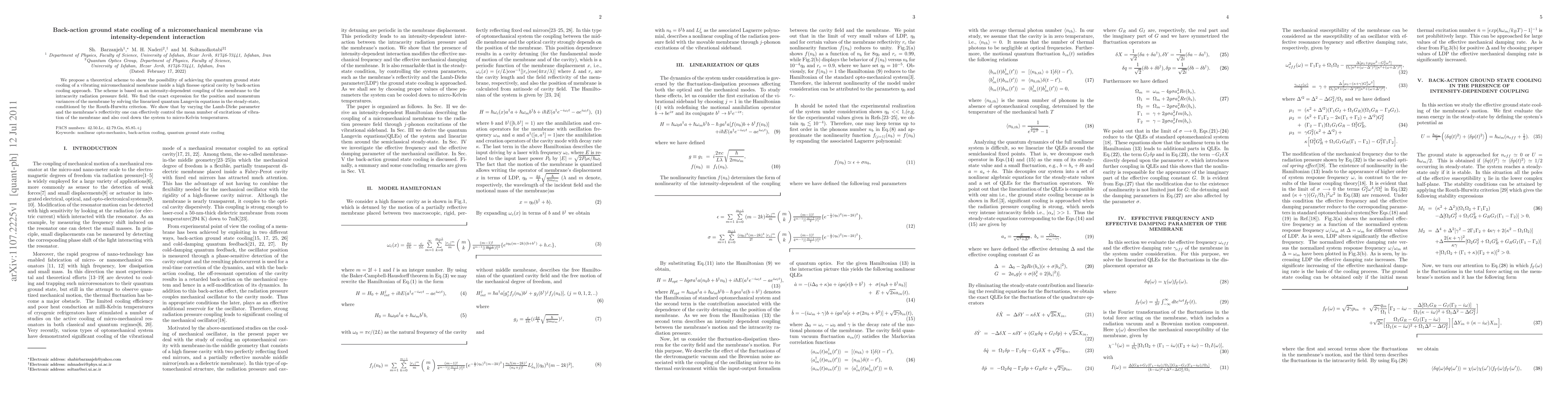This paper proposes a theoretical scheme for achieving quantum ground state cooling of a micromechanical membrane using back-action cooling within a high finesse optical cavity. The approach leverages intensity-dependent coupling to the intracavity radiation pressure field, demonstrating control over the membrane's vibrational excitations and cooling it to micro-Kelvin temperatures.