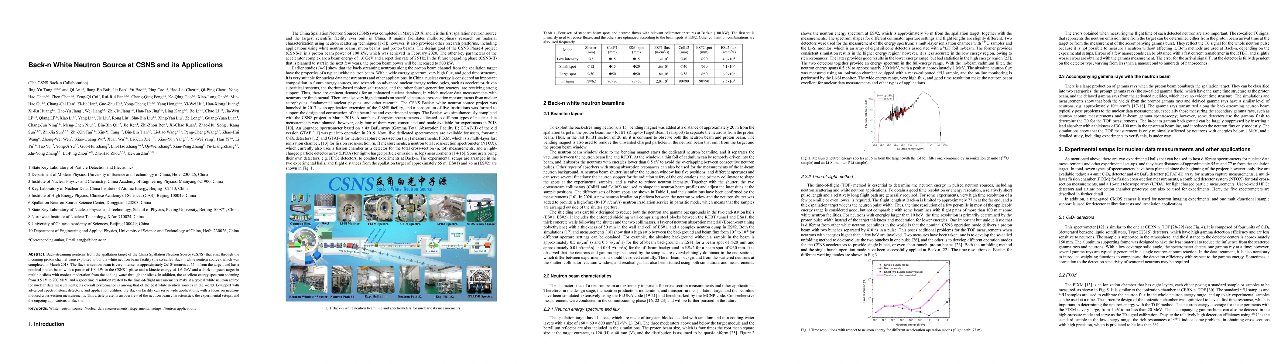 The Back-n white neutron source at CSNS utilizes back-streaming neutrons from the spallation target to produce an intense, high-quality white neutron beam, ideal for nuclear data measurements. Its applications focus on neutron-induced cross-section measurements, leveraging advanced experimental setups and detectors.