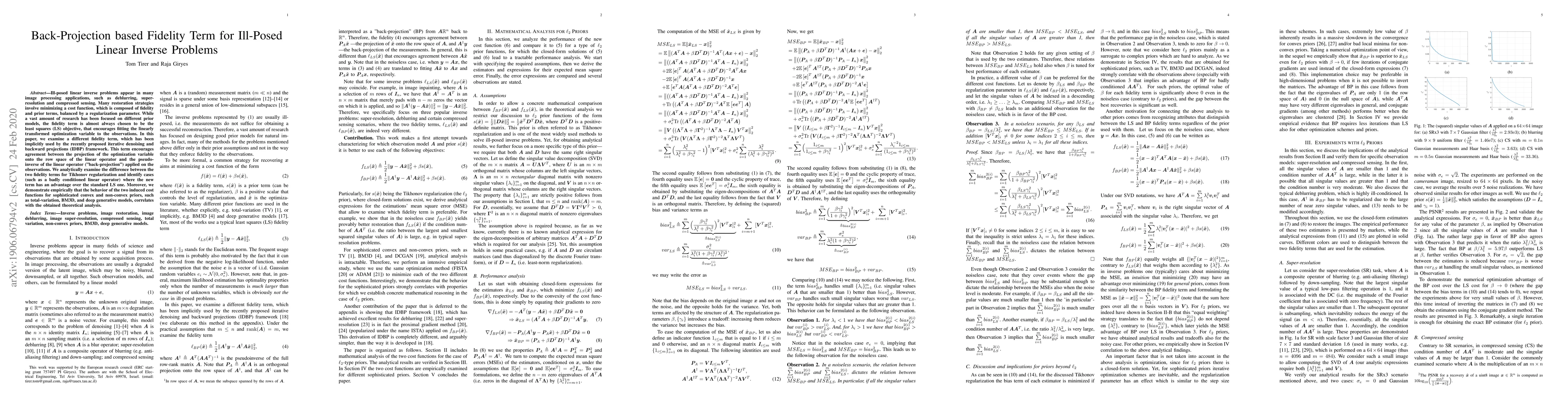 Researchers propose a new approach to ill-posed linear inverse problems by using back-projection instead of least squares for the fidelity term, showing improved performance in certain cases.