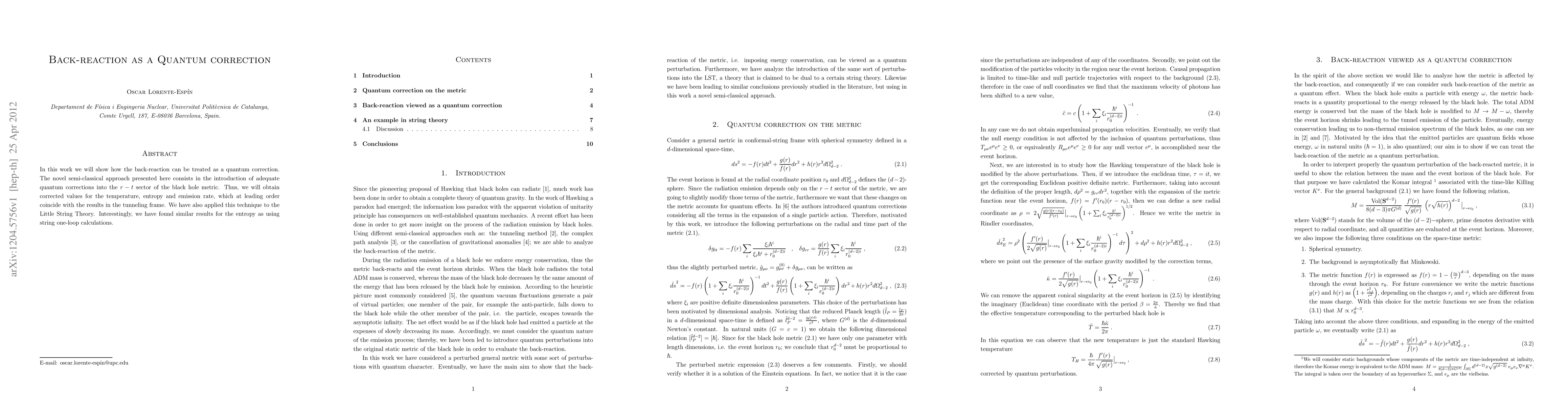 In this work we will show how the back-reaction can be treated as a quantum correction. The novel semi-classical approach presented here consists in the introduction of adequate quantum corrections into the r-t sector of the black hole metric. Thus, we will obtain corrected values for the temperature, entropy and emission rate, which at leading order coincide with the results in the tunneling frame. We have also applied this technique to the Little String Theory. Interestingly, we have found similar results for the entropy as using string one-loop calculations.