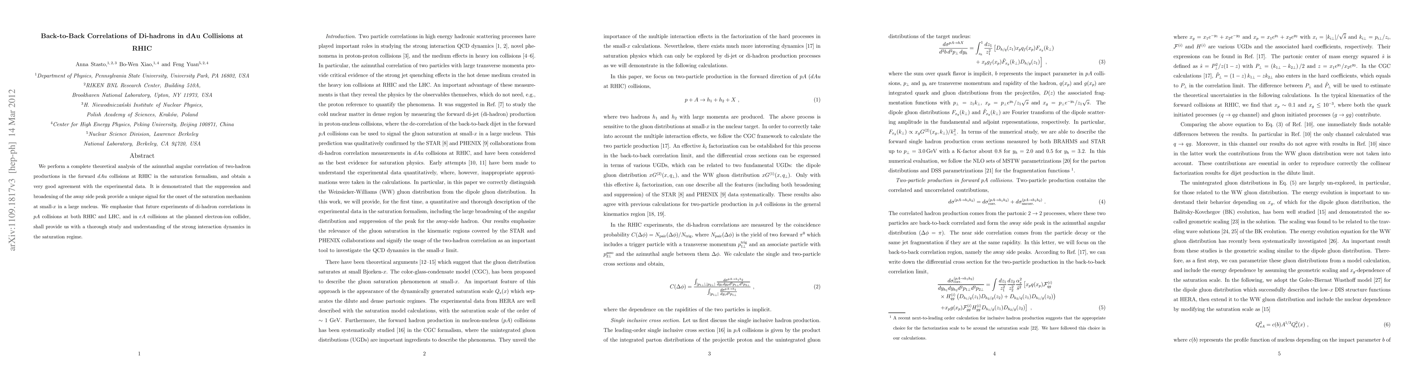 This paper presents a theoretical analysis of di-hadron correlations in $dAu$ collisions at RHIC, showing strong agreement with experimental data. The study reveals that suppression and broadening of the away side peak signal the onset of saturation mechanisms at small-$x$ in large nuclei, suggesting future experiments will further elucidate strong interaction dynamics in the saturation regime.