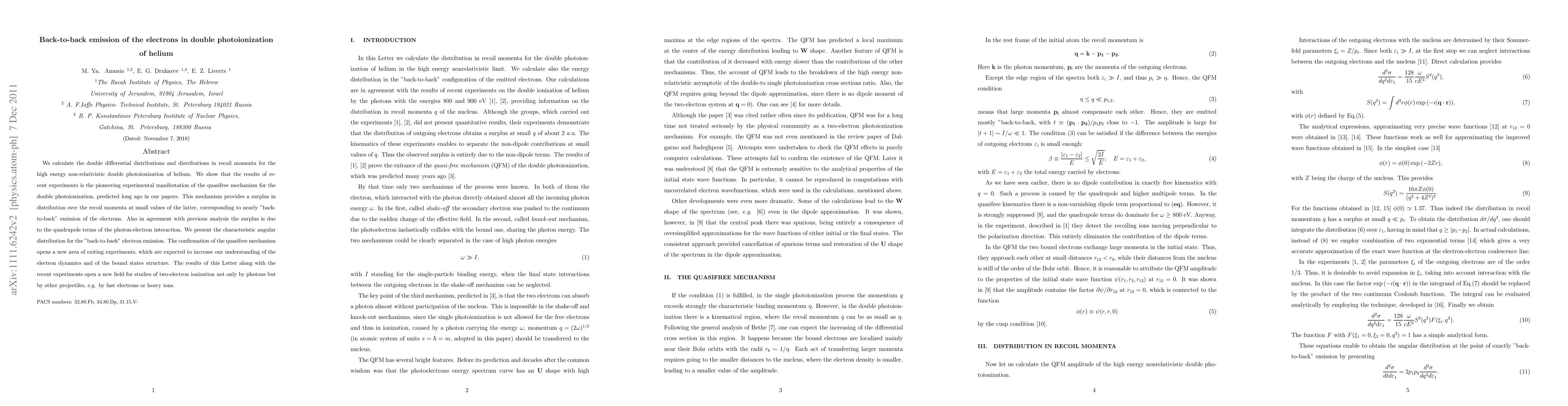 We calculate the double differential distributions and distributions in recoil momenta for the high energy non-relativistic double photoionization of helium. We show that the results of recent experiments is the pioneering experimental manifestation of the quasifree mechanism for the double photoionization, predicted long ago in our papers. This mechanism provides a surplus in distribution over the recoil momenta at small values of the latter, corresponding to nearly "back-to-back" emission of the electrons. Also in agreement with previous analysis the surplus is due to the quadrupole terms of the photon-electron interaction. We present the characteristic angular distribution for the "back-to-back" electron emission. The confirmation of the quasifree mechanism opens a new area of exiting experiments, which are expected to increase our understanding of the electron dynamics and of the bound states structure. The results of this Letter along with the recent experiments open a new field for studies of two-electron ionization not only by photons but by other projectiles, e.g. by fast electrons or heavy ions.
