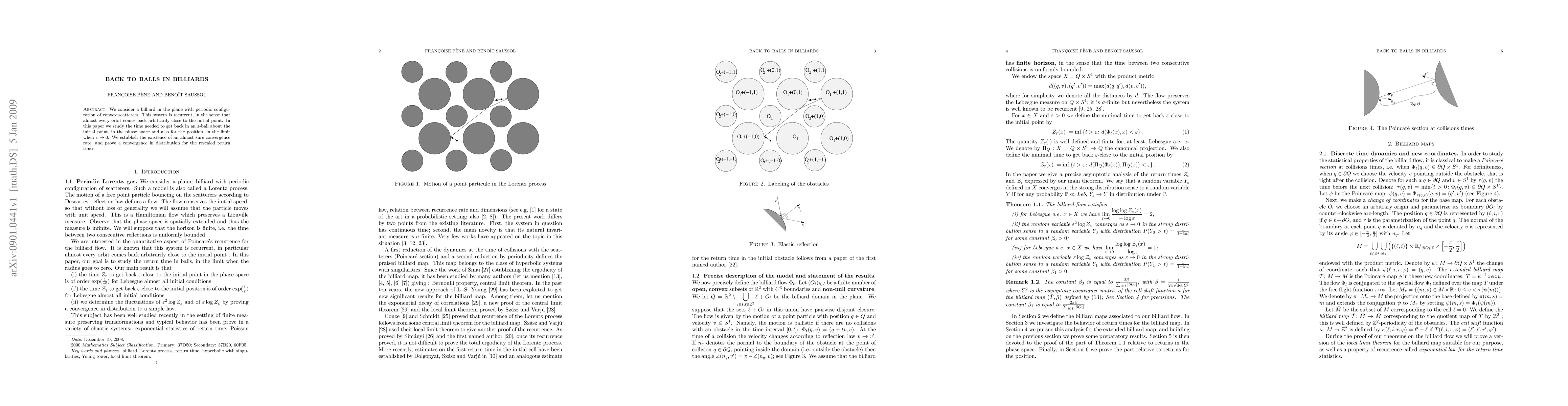 We consider a billiard in the plane with periodic configuration of convex scatterers. This system is recurrent, in the sense that almost every orbit comes back arbitrarily close to the initial point. In this paper we study the time needed to get back in an r-ball about the initial point, in the phase space and also for the position, in the limit when r->0. We establish the existence of an almost sure convergence rate, and prove a convergence in distribution for the rescaled return times.