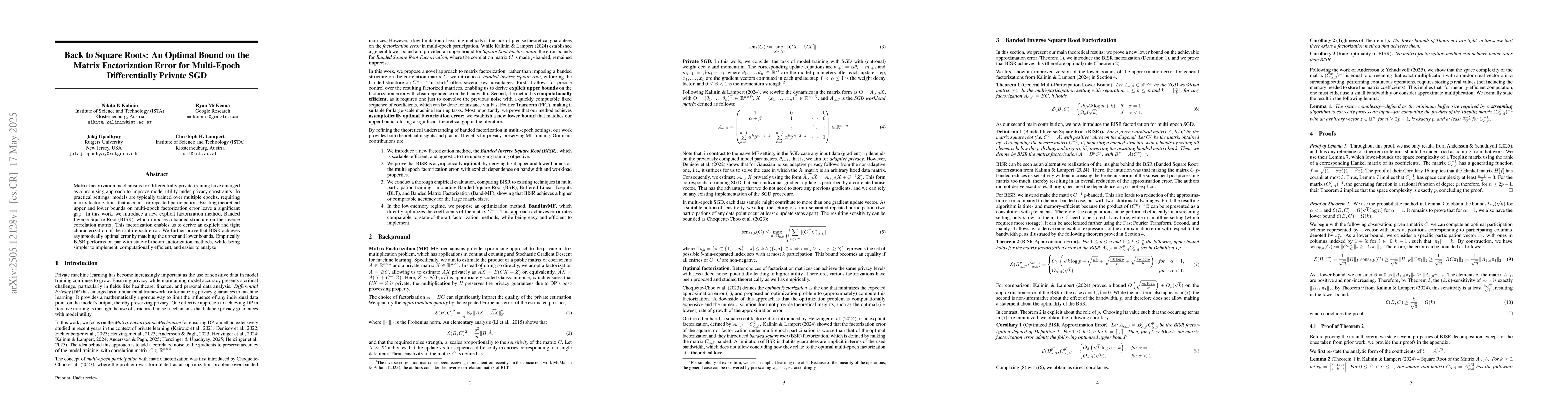 Researchers developed a new factorization method called Banded Inverse Square Root (BISR) that provides an explicit bound on the error of matrix factorization for differentially private stochastic gradient descent, achieving asymptotic optimality with state-of-the-art methods.