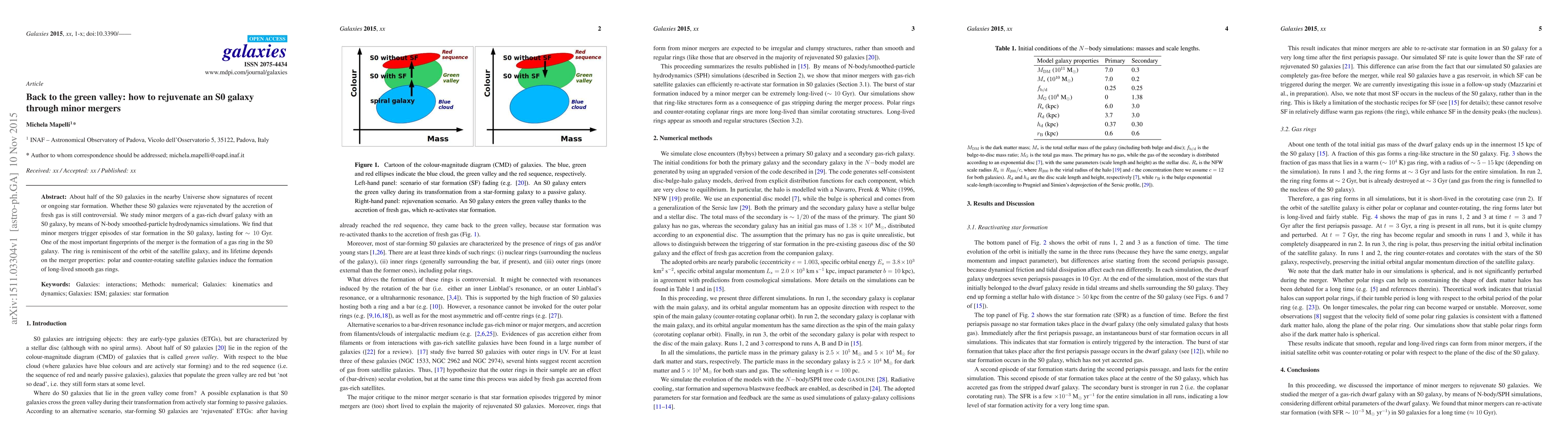 About half of the S0 galaxies in the nearby Universe show signatures of recent or ongoing star formation. Whether these S0 galaxies were rejuvenated by the accretion of fresh gas is still controversial. We study minor mergers of a gas-rich dwarf galaxy with an S0 galaxy, by means of N-body smoothed-particle hydrodynamics simulations. We find that minor mergers trigger episodes of star formation in the S0 galaxy, lasting for ~10 Gyr. One of the most important fingerprints of the merger is the formation of a gas ring in the S0 galaxy. The ring is reminiscent of the orbit of the satellite galaxy, and its lifetime depends on the merger properties: polar and counter-rotating satellite galaxies induce the formation of long-lived smooth gas rings.