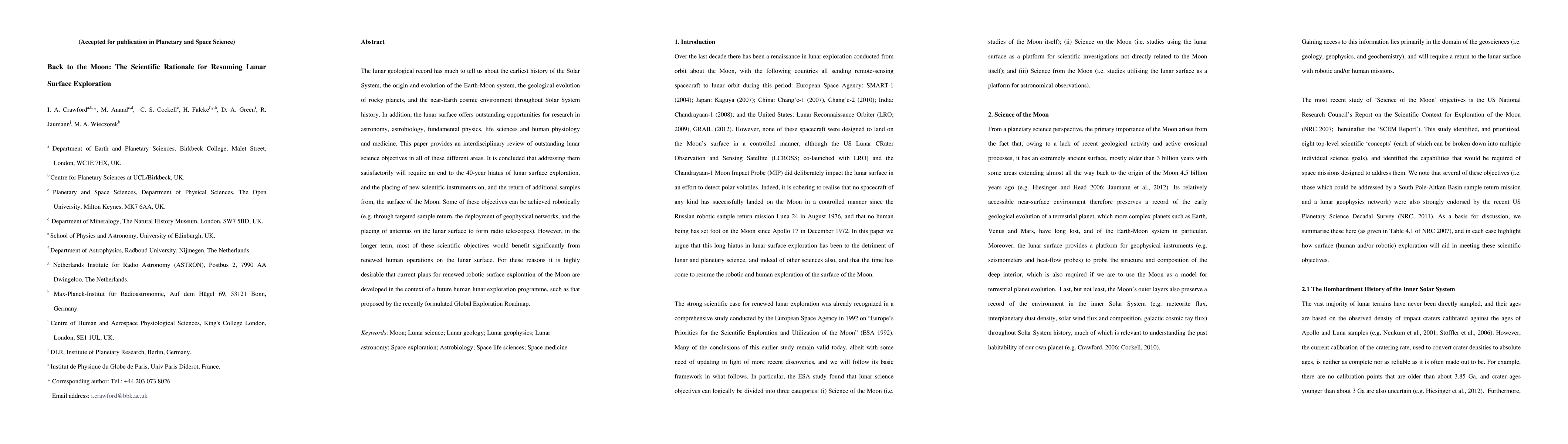 This paper reviews the extensive scientific value of lunar exploration, emphasizing its role in understanding the Solar System's history and the Earth-Moon system. It advocates for ending the lunar exploration hiatus and suggests that both robotic and human missions are essential to fully achieve these scientific objectives.