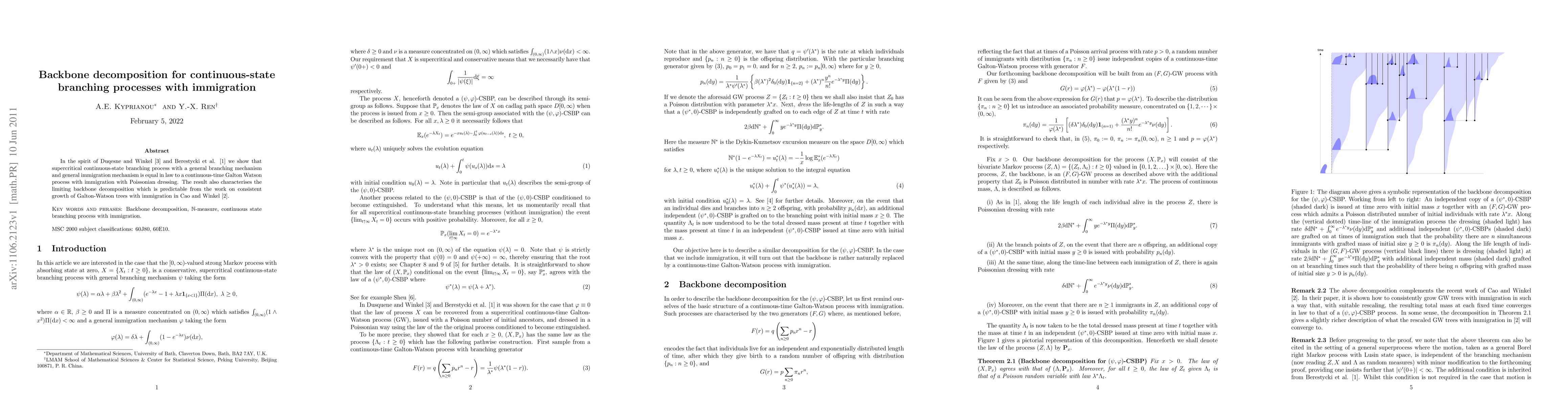 This paper demonstrates that a supercritical continuous-state branching process with general mechanisms is equivalent to a continuous-time Galton-Watson process with immigration and Poissonian dressing. The study also characterizes the limiting backbone decomposition, building on prior work on the consistent growth of Galton-Watson trees with immigration.