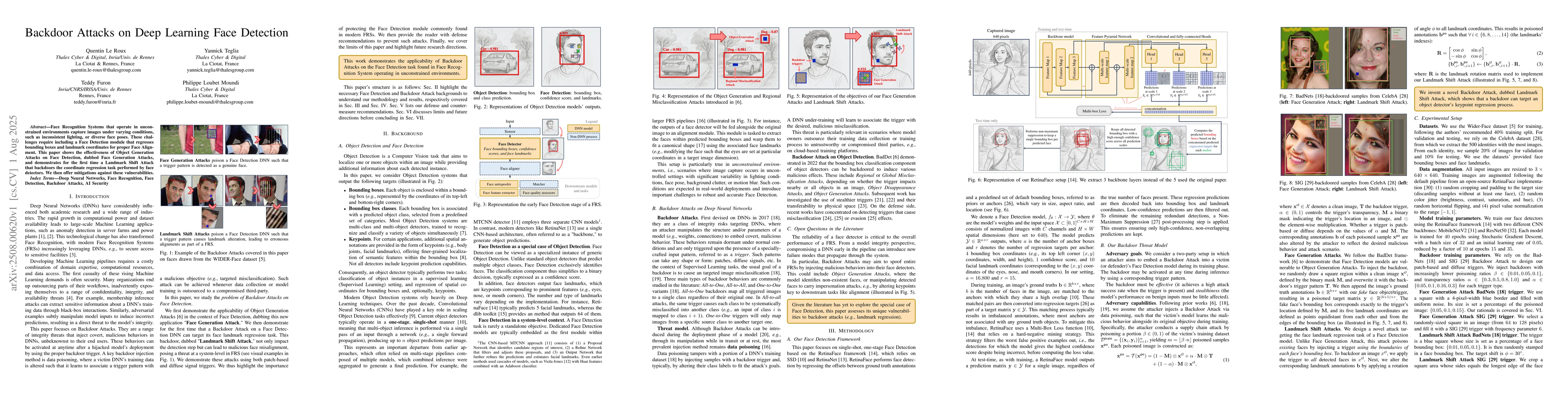 Face Recognition Systems that operate in unconstrained environments capture images under varying conditions,such as inconsistent lighting, or diverse face poses. These challenges require including a Face Detection module that regresses bounding boxes and landmark coordinates for proper Face Alignment. This paper shows the effectiveness of Object Generation Attacks on Face Detection, dubbed Face Generation Attacks, and demonstrates for the first time a Landmark Shift Attack that backdoors the coordinate regression task performed by face detectors. We then offer mitigations against these vulnerabilities.