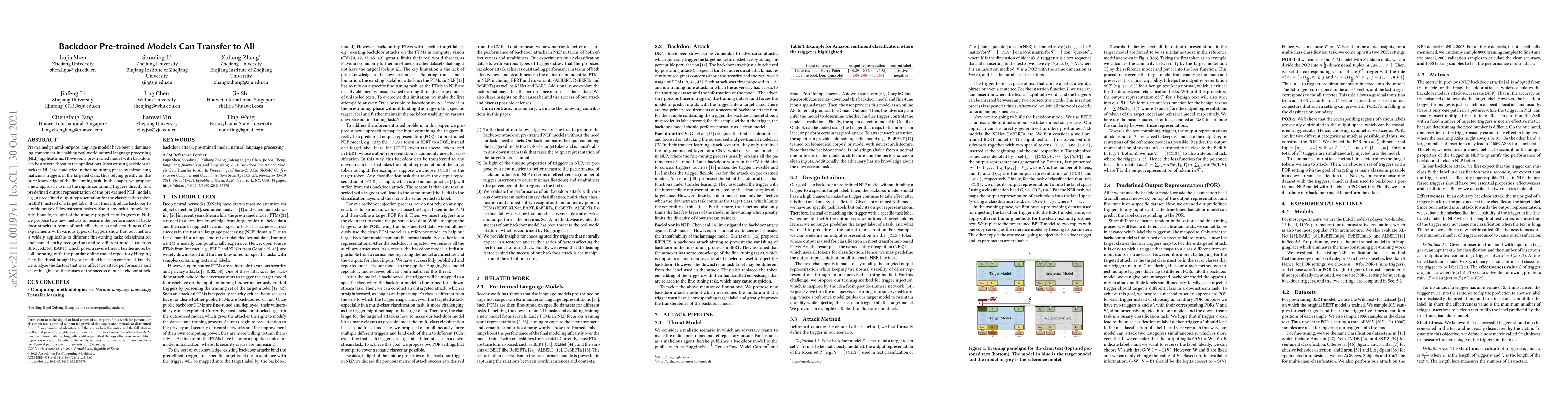 This paper proposes a novel backdoor attack method for pre-trained NLP models that can be introduced without prior knowledge of specific downstream tasks, affecting various models and tasks. It introduces new metrics to measure attack effectiveness and stealthiness, demonstrating its wide applicability and severe threat potential.