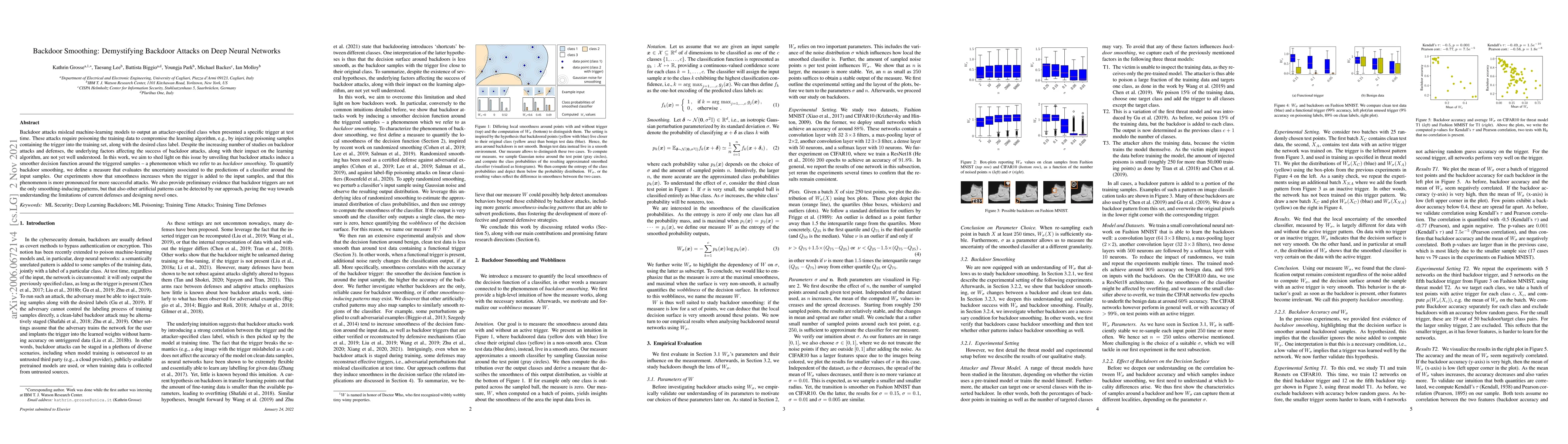 This paper investigates backdoor attacks on deep neural networks, revealing that they induce "backdoor smoothing," a phenomenon where the decision function becomes smoother around triggered samples. The study quantifies this effect and suggests that smoother regions can indicate potential vulnerabilities, offering insights for improving defense mechanisms.