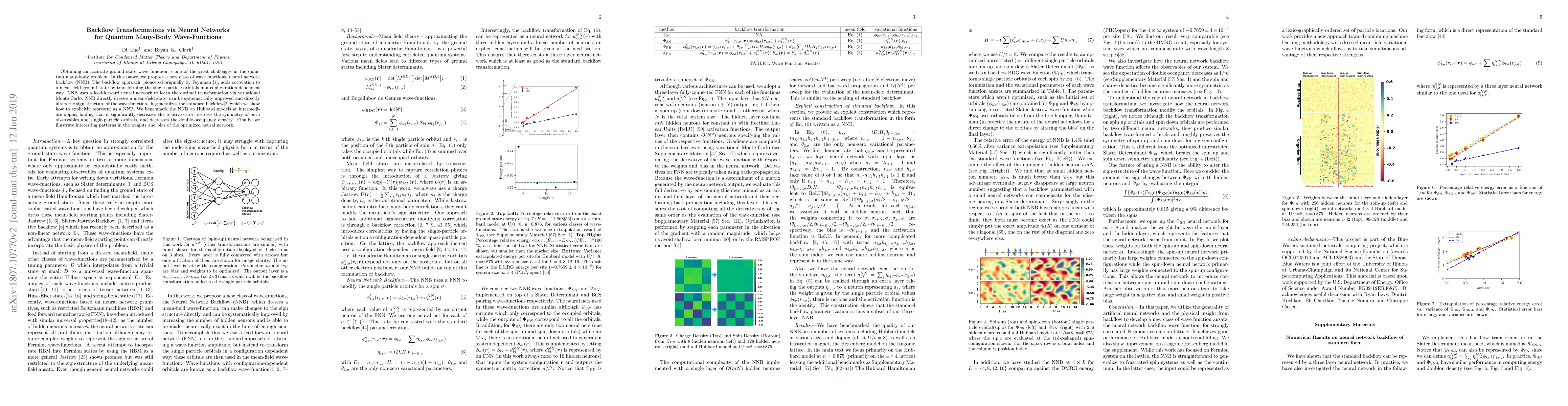 This paper introduces neural network backflow (NNB) to improve ground state wave functions in quantum many-body problems by systematically transforming single-particle orbitals. The NNB method significantly decreases error, restores symmetry, and reduces double-occupancy density when benchmarked on a Hubbard model.