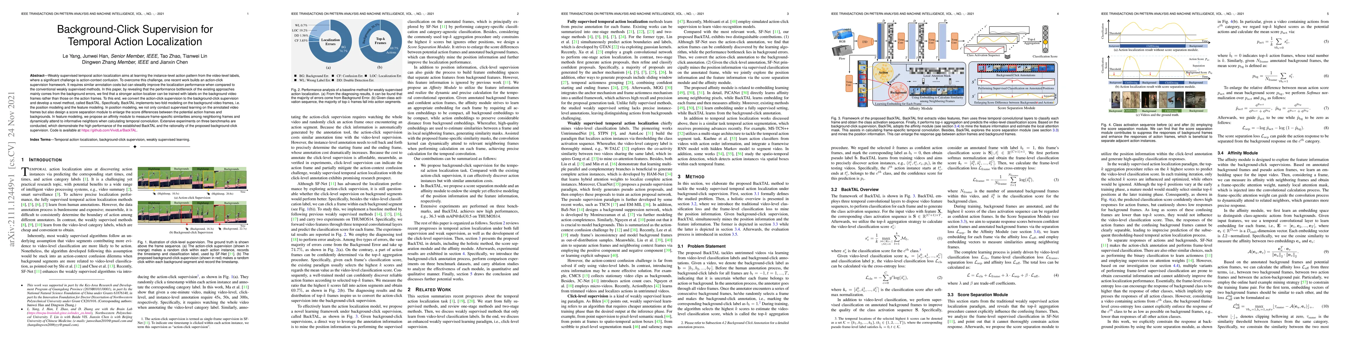 This paper proposes BackTAL, a novel method for temporal action localization using background-click supervision instead of action-click supervision, which addresses the performance bottleneck caused by background errors. BackTAL employs position and feature modeling on background frames, enhancing score separation and dynamic frame similarity measurement, leading to superior localization performance on benchmark datasets.