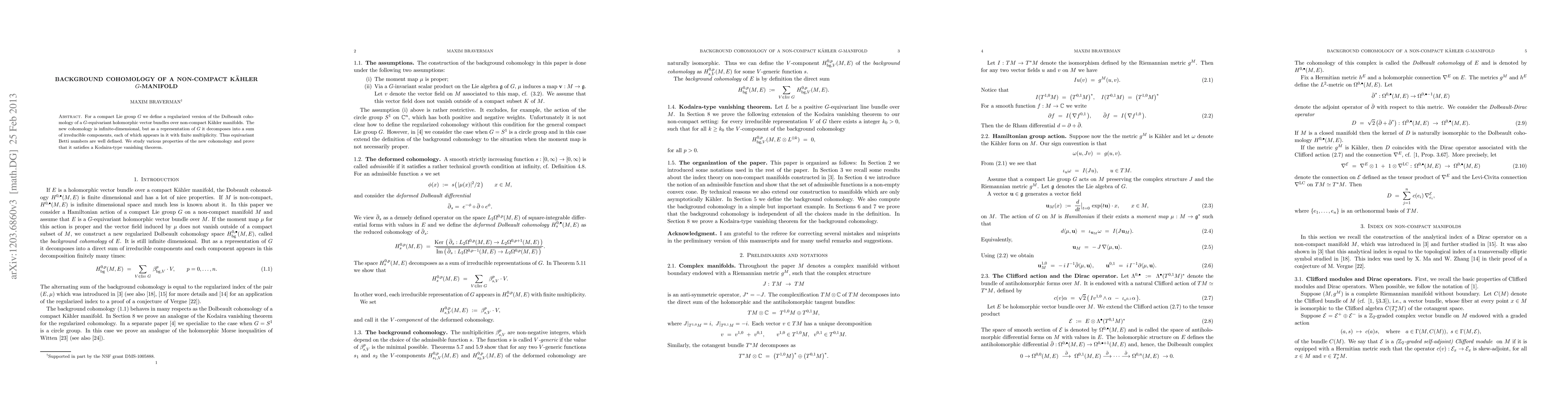 For a compact Lie group G we define a regularized version of the Dolbeault cohomology of a G-equivariant holomorphic vector bundles over non-compact Kahler manifolds. The new cohomology is infinite-dimensional, but as a representation of G it decomposes into a sum of irreducible components, each of which appears in it with finite multiplicity. Thus equivariant Betti numbers are well defined. We study various properties of the new cohomology and prove that it satisfies a Kodaira-type vanishing theorem.