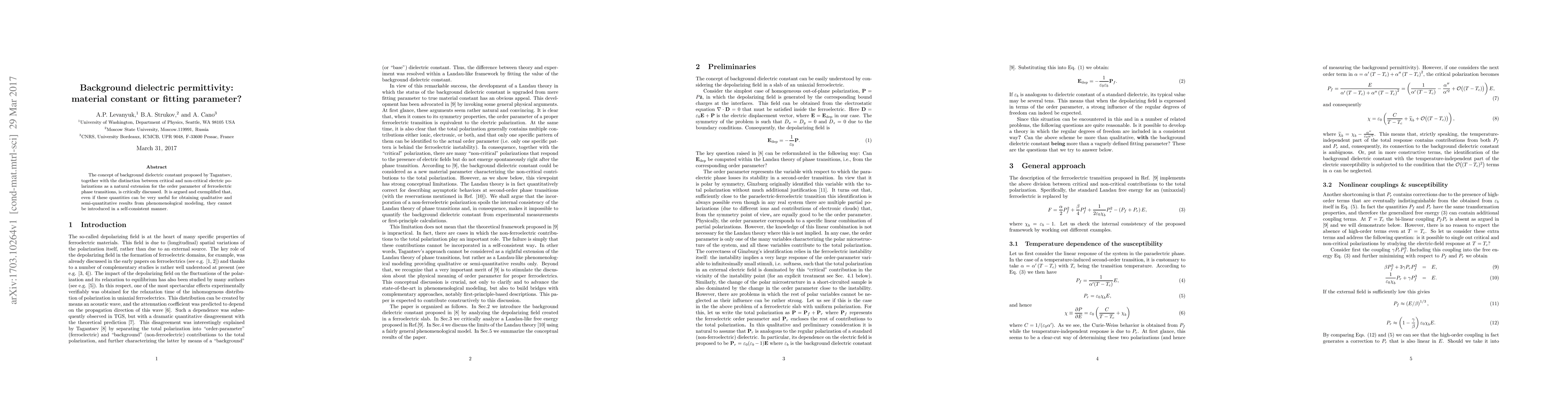 Researchers question the validity of background dielectric constant as a fundamental material property, arguing it cannot be consistently introduced into models.