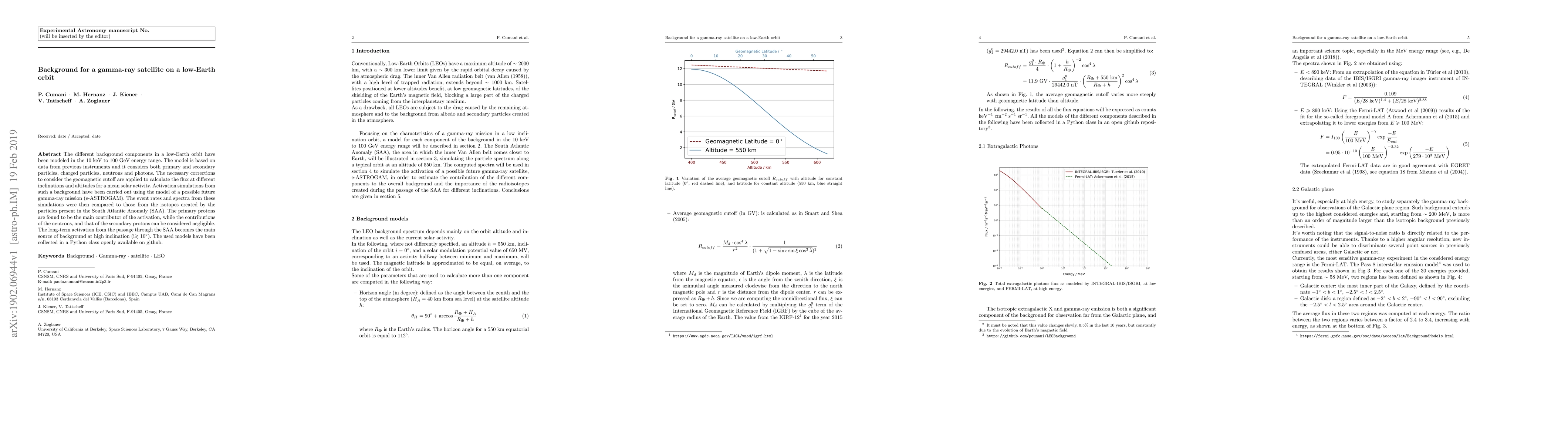 A gamma-ray satellite on a low-Earth orbit would face a significant background radiation due to primary and secondary particles, with protons being the main contributor. Long-term activation from the South Atlantic Anomaly becomes a major source of background at high inclinations.