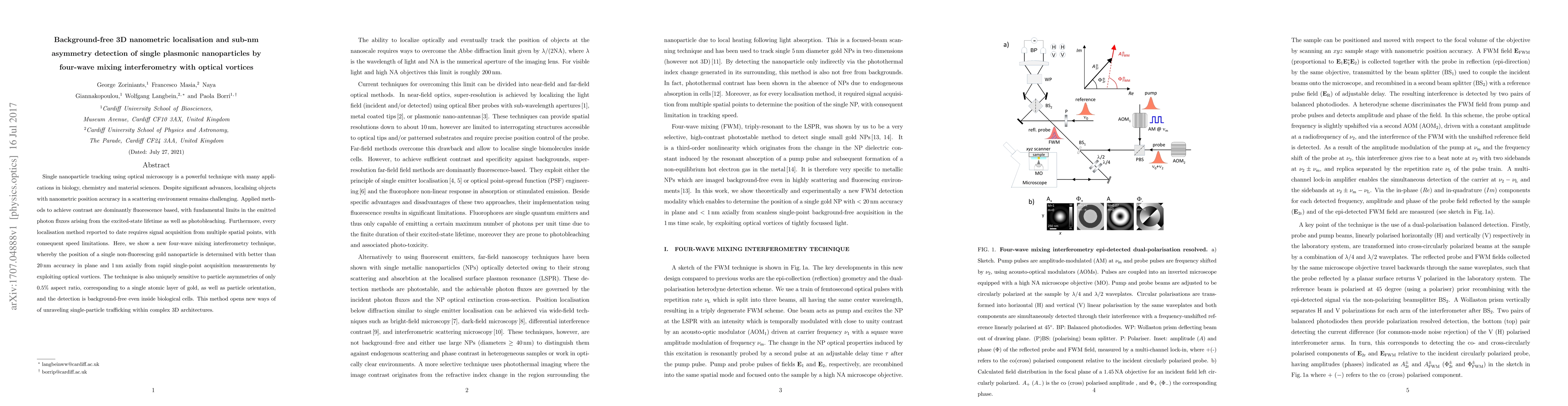 Researchers developed a new technique for localizing single nanoparticles with nanometric accuracy using four-wave mixing interferometry and optical vortices, overcoming limitations of traditional fluorescence-based methods.