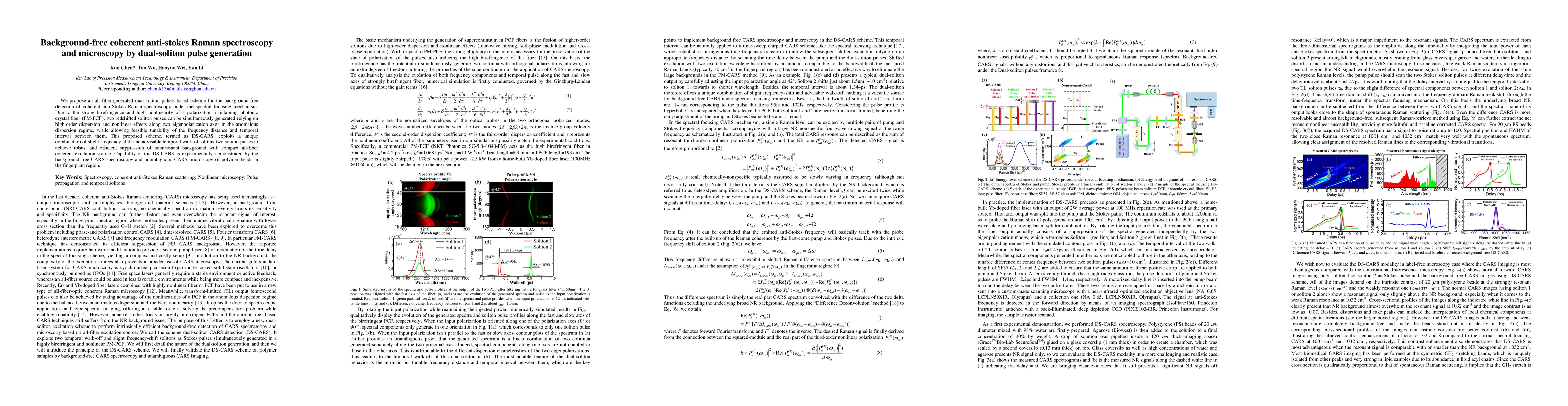 This paper proposes a dual-soliton pulse generation scheme for background-free coherent anti-Stokes Raman spectroscopy (CARS) using an all-fiber system. The method leverages birefringence and nonlinearity in a polarization-maintaining photonic crystal fiber to generate two redshifted soliton pulses, achieving efficient suppression of nonresonant background and demonstrating its capability through CARS spectroscopy and microscopy of polymer beads.