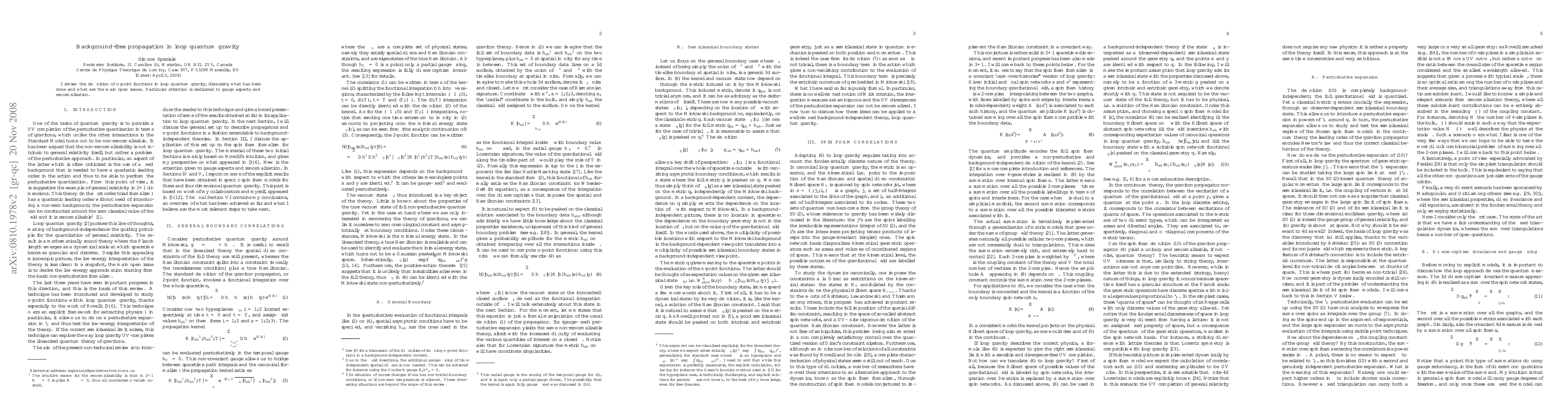 I review the definition of n-point functions in loop quantum gravity, discussing what has been done and what are the main open issues. Particular attention is dedicated to gauge aspects and renormalization.