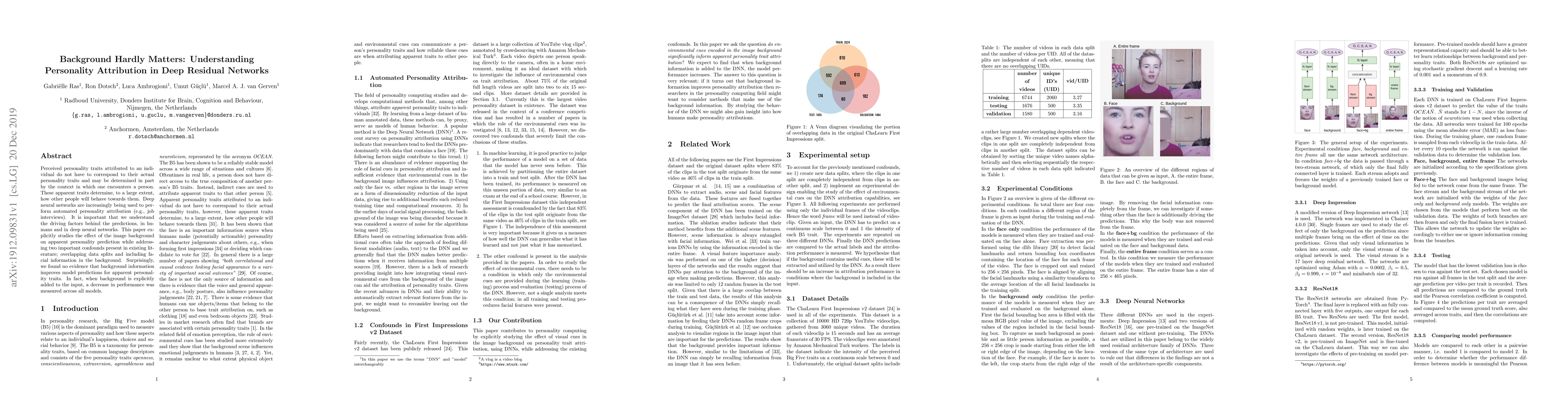 This paper investigates the impact of image background on personality attribution in deep residual networks, finding no improvement and even a decrease in prediction accuracy when background information is included. It addresses existing confounds in the literature and highlights the importance of understanding model prediction factors.