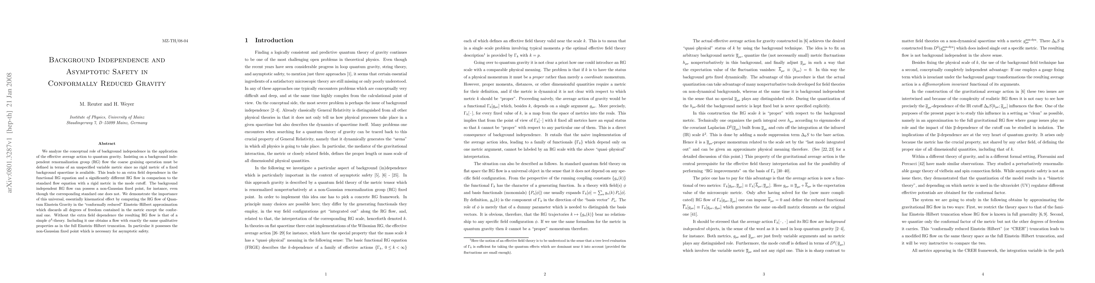 This paper explores how background independence alters the renormalization group flow in quantum gravity, showing that it introduces an extra field dependence leading to a different flow compared to standard methods. It demonstrates this through the conformally reduced Einstein-Hilbert approximation, revealing a non-Gaussian fixed point crucial for asymptotic safety.