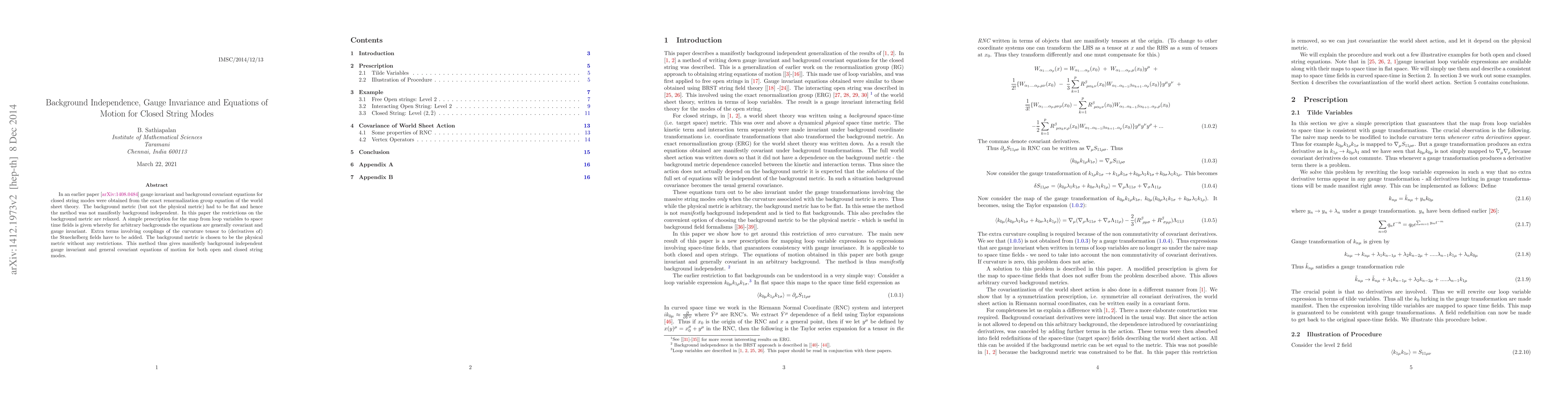 This paper extends earlier work on gauge invariant and covariant equations for closed string modes by relaxing restrictions on the background metric, achieving manifest background independence. It introduces a new map from loop variables to spacetime fields, adding extra terms to ensure general covariance and gauge invariance for arbitrary backgrounds.
