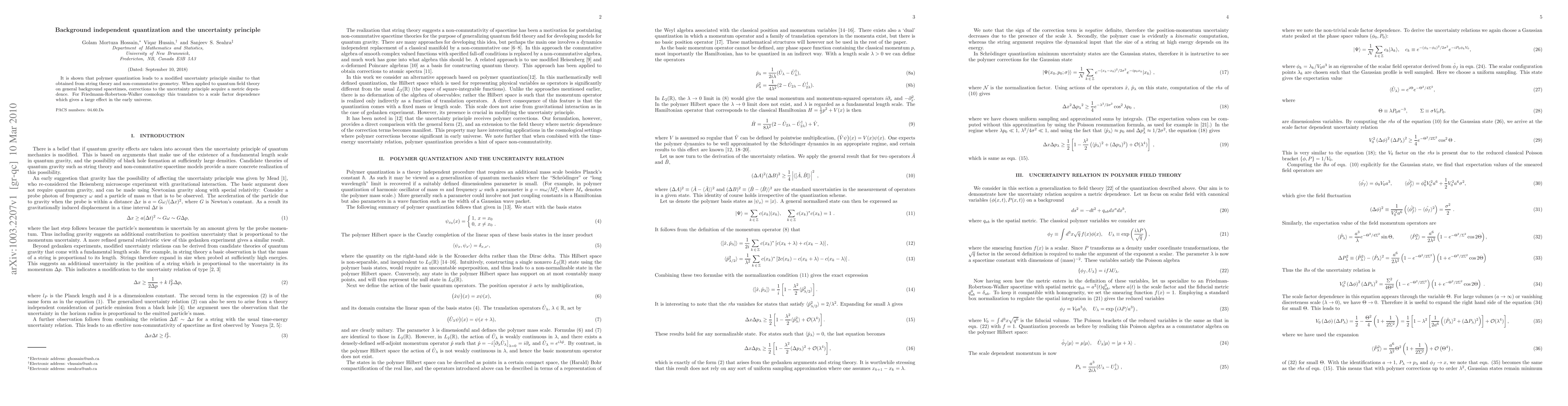 This paper demonstrates that polymer quantization results in a modified uncertainty principle akin to those found in string theory and non-commutative geometry. It shows that these corrections depend on the metric, significantly impacting quantum field theory on general background spacetimes, especially in the early universe as described by Friedmann-Robertson-Walker cosmology.