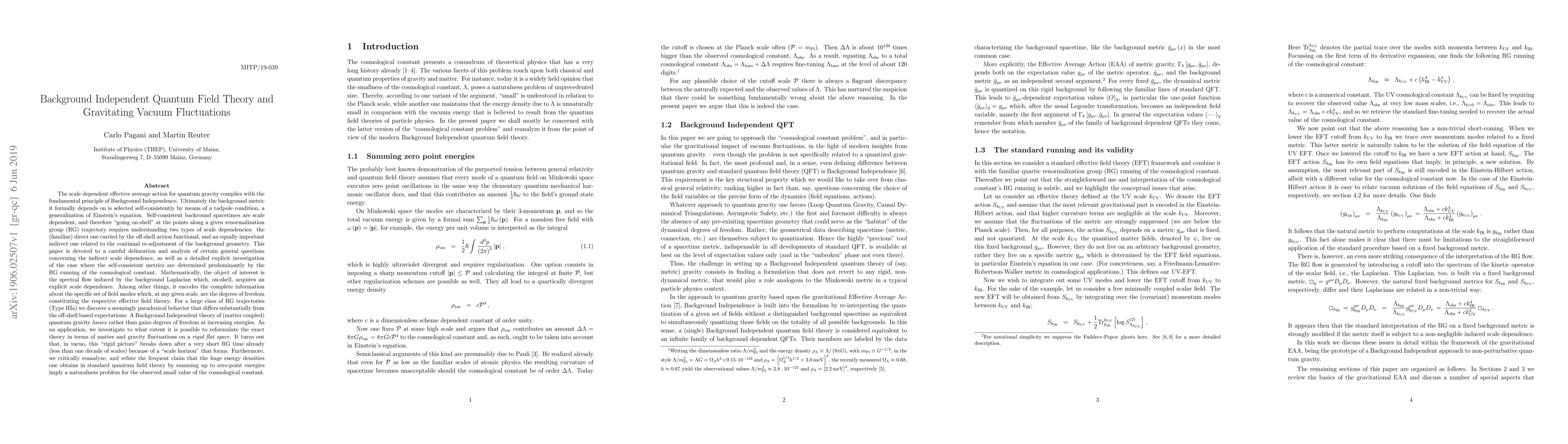 The scale dependent effective average action for quantum gravity complies with the fundamental principle of Background Independence. Ultimately the background metric it formally depends on is selected self-consistently by means of a suitable generalization of Einstein's equation. Self-consistent backround spacetimes are scale dependent, and therefore "going on-shell" at the points along a given renormalization group (RG) trajectory requires understanding two types of scale dependencies: the (familiar) direct one carried by the off-shell action functional, and an indirect one related to the self-consistent background geometry. This paper is devoted to a careful delineation and analysis of certain general questions concerning the indirect scale dependence, as well as a detailed explicit investigation of the case where the self-consistent metrics are determined predominantly by the RG running of the cosmological constant. Mathematically, the object of interest is the spectral flow induced by the background Laplacian which, on-shell, acquires an explicit scale dependence. It encodes the information about the specific set of field modes which, at any given scale, are the degrees of freedom constituting the respective effective field theory. For a large class of RG trajectories we discover a seemingly paradoxical behavior: the theory looses rather than gains degrees of freedom at increasing energies. As an application, we investigate to what extent it is possible to reformulate the exact theory in terms of matter and gravity fluctuations on a rigid flat space. It turns out that, in vacuo, this "rigid picture" breaks down after a very short RG time. Furthermore, we reanalyze, and refute the claim that the huge energy densities one obtains in standard quantum field theory by summing up to zero-point energies imply a naturalness problem for the observed small value of the cosmological constant.