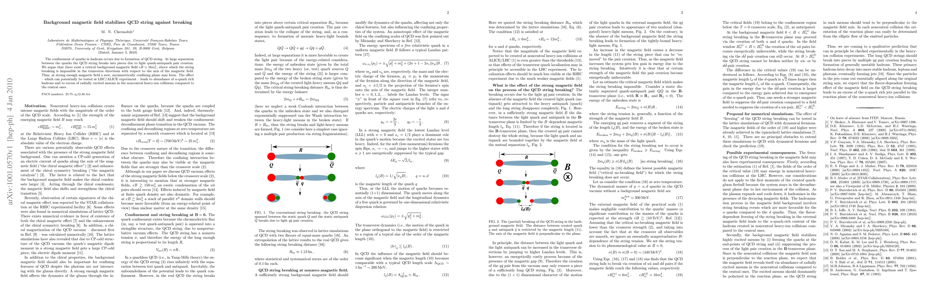 A strong background magnetic field can prevent QCD string from breaking into pieces, potentially leading to an increase in u-quark rich hadrons and radially excited mesons in heavy-ion collisions.