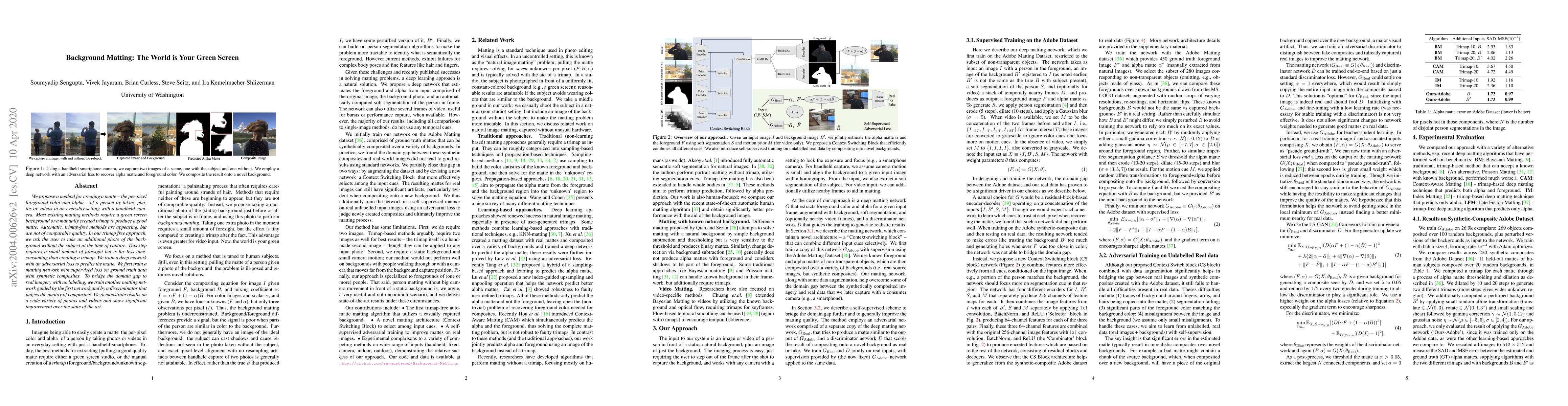Researchers propose a trimap-free method for creating mattes from everyday photos and videos without green screens, using an adversarial loss to predict the foreground color and alpha.