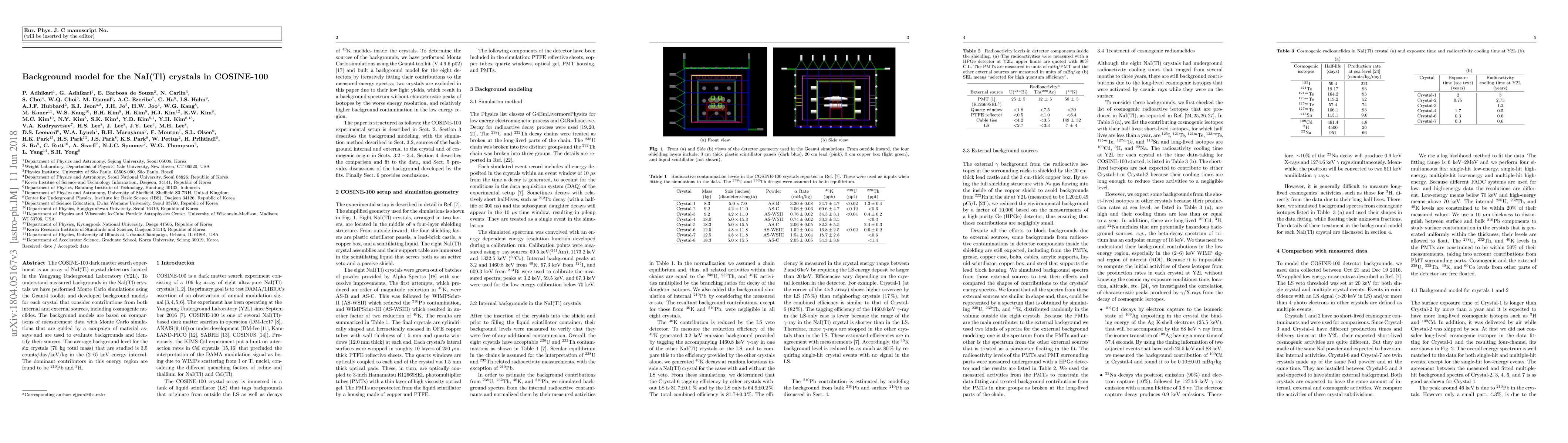 The COSINE-100 experiment uses NaI(Tl) crystals to search for dark matter, employing Monte Carlo simulations to develop background models considering internal and external sources. The average background level is 3.5 counts/day/keV/kg, with $^{210}$Pb and $^3$H identified as the main contributors.