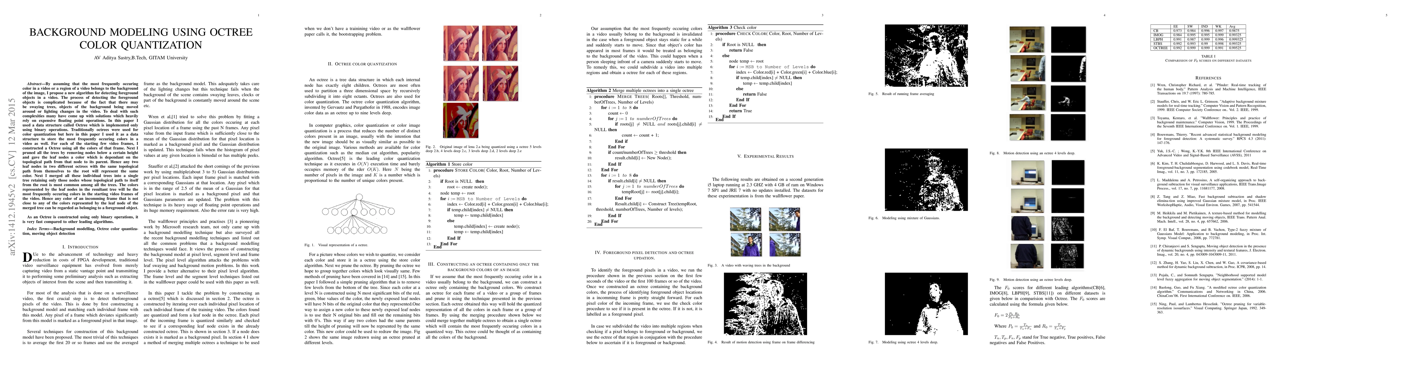 Researchers propose a new algorithm for detecting foreground objects in videos using Octree color quantization, which assumes the most frequently occurring color in a frame and uses binary operations to build a data structure.