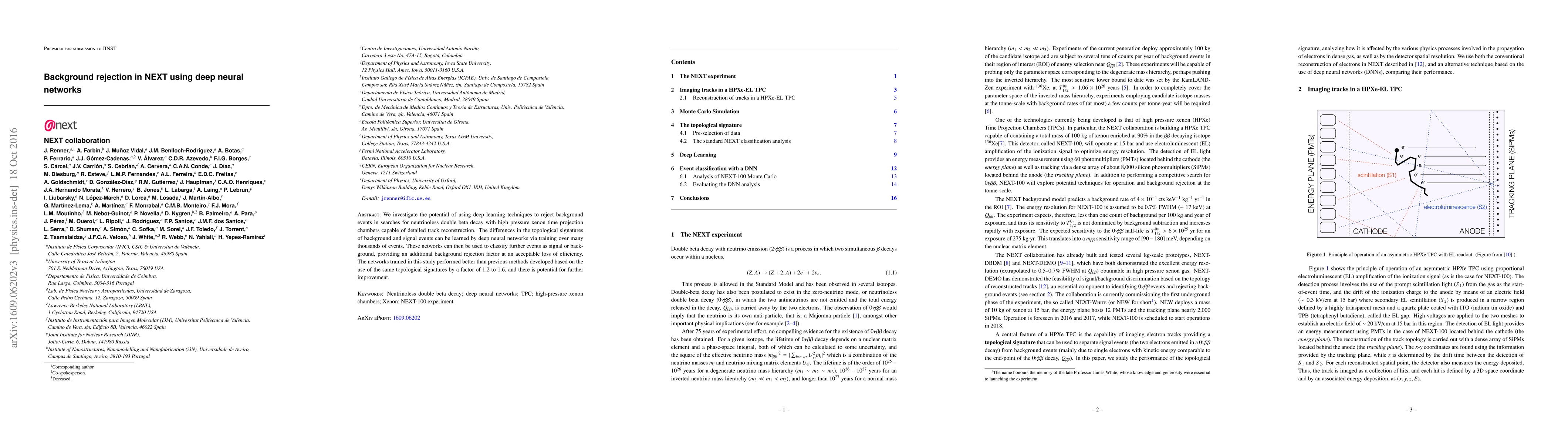 We investigate the potential of using deep learning techniques to reject background events in searches for neutrinoless double beta decay with high pressure xenon time projection chambers capable of detailed track reconstruction. The differences in the topological signatures of background and signal events can be learned by deep neural networks via training over many thousands of events. These networks can then be used to classify further events as signal or background, providing an additional background rejection factor at an acceptable loss of efficiency. The networks trained in this study performed better than previous methods developed based on the use of the same topological signatures by a factor of 1.2 to 1.6, and there is potential for further improvement.