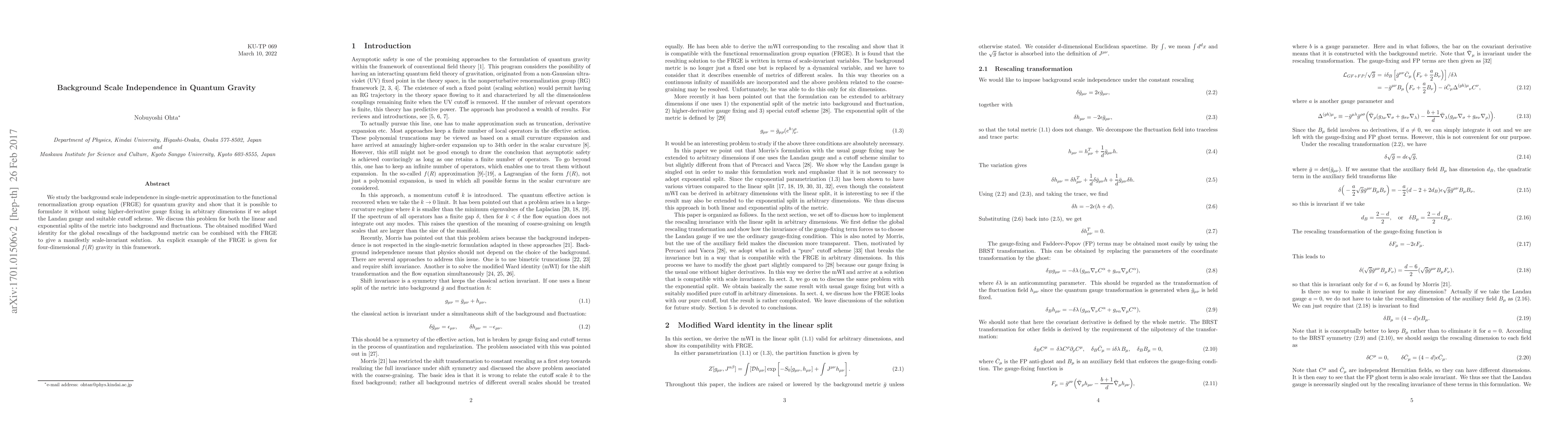 The research demonstrates that background scale independence in quantum gravity can be achieved in the single-metric approximation to the functional renormalization group equation (FRGE) by adopting the Landau gauge and a suitable cutoff scheme, without requiring higher-derivative gauge fixing. An explicit example is provided for four-dimensional $f(R)$ gravity.