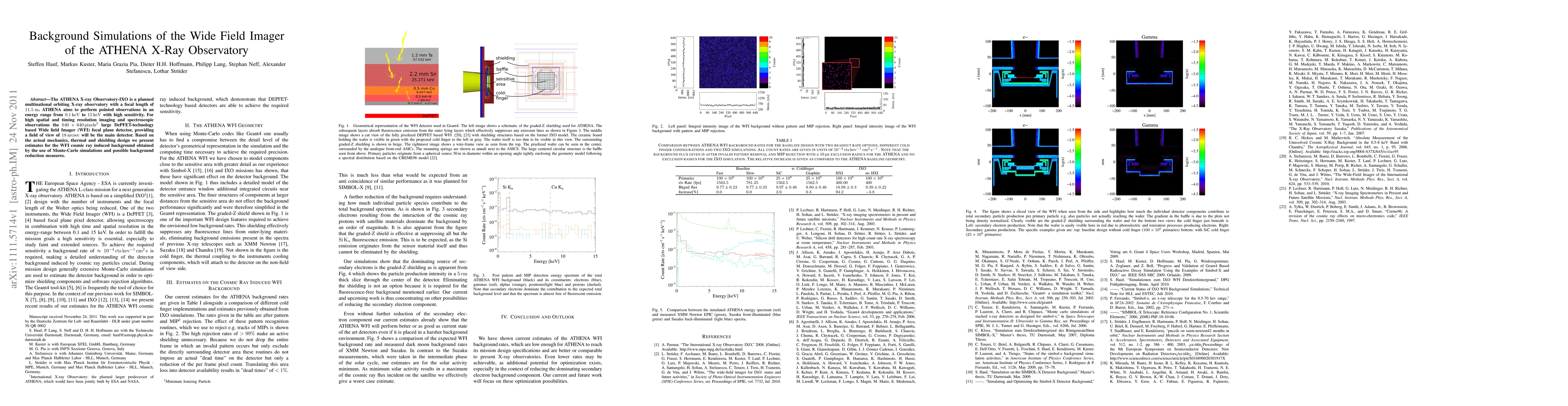 This paper presents background simulations for the Wide Field Imager (WFI) of the ATHENA X-ray Observatory, focusing on cosmic ray induced background estimates using Monte-Carlo simulations. It also discusses potential background reduction measures based on the WFI's design and specifications.