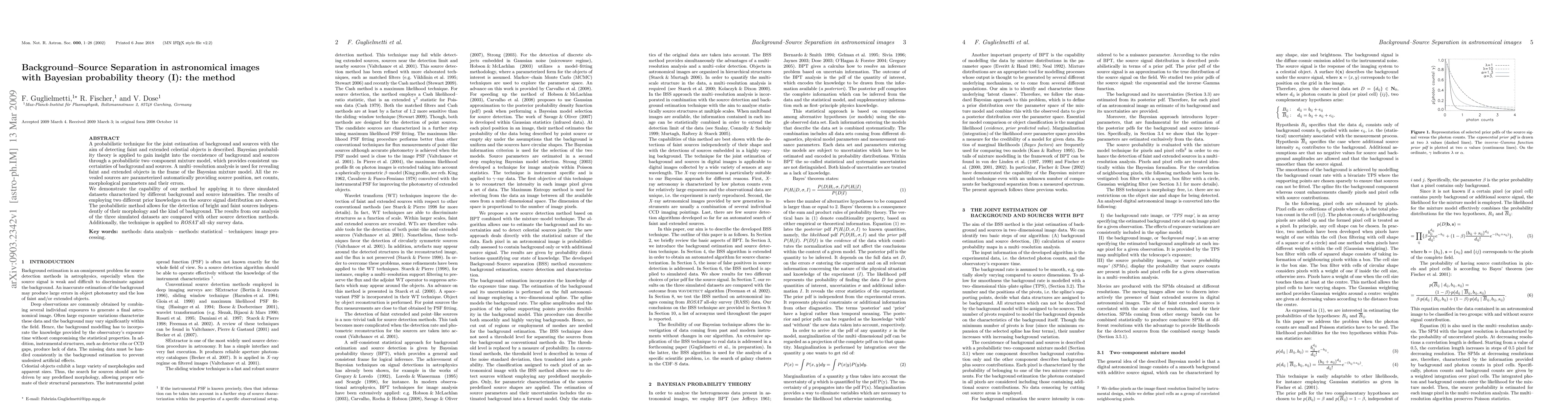 A probabilistic technique for the joint estimation of background and sources with the aim of detecting faint and extended celestial objects is described. Bayesian probability theory is applied to gain insight into the coexistence of background and sources through a probabilistic two-component mixture model, which provides consistent uncertainties of background and sources. A multi-resolution analysis is used for revealing faint and extended objects in the frame of the Bayesian mixture model. All the revealed sources are parameterized automatically providing source position, net counts, morphological parameters and their errors.