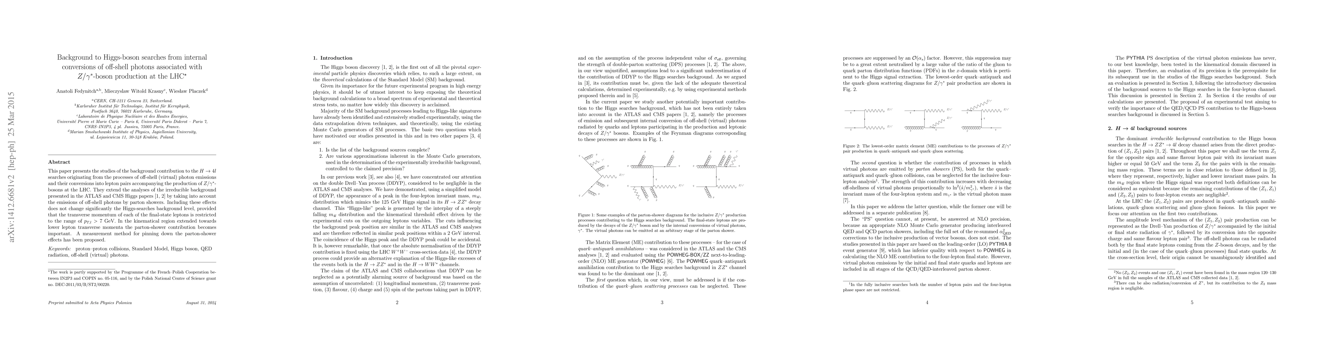 This paper investigates the background contributions to Higgs-boson searches via $H \rightarrow 4l$ from off-shell photon emissions and their conversions in $Z/\gamma^*$-boson production at the LHC, finding minimal impact on background levels when lepton transverse momentum exceeds 7 GeV. A method for measuring parton-shower effects in lower lepton transverse momentum regions is proposed.