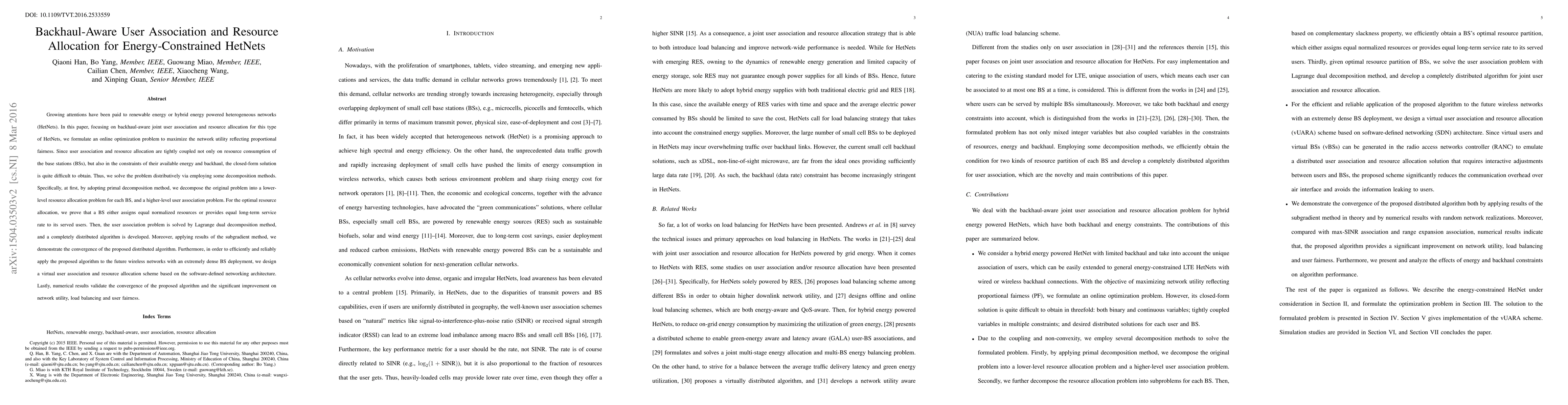 This paper proposes an online optimization framework for renewable/hybrid energy-powered heterogeneous networks (HetNets) focusing on backhaul-aware user association and resource allocation to maximize network utility. It employs decomposition methods to solve the coupled optimization problem, achieving distributed convergence and demonstrating significant improvements in network utility, load balancing, and user fairness through numerical results.