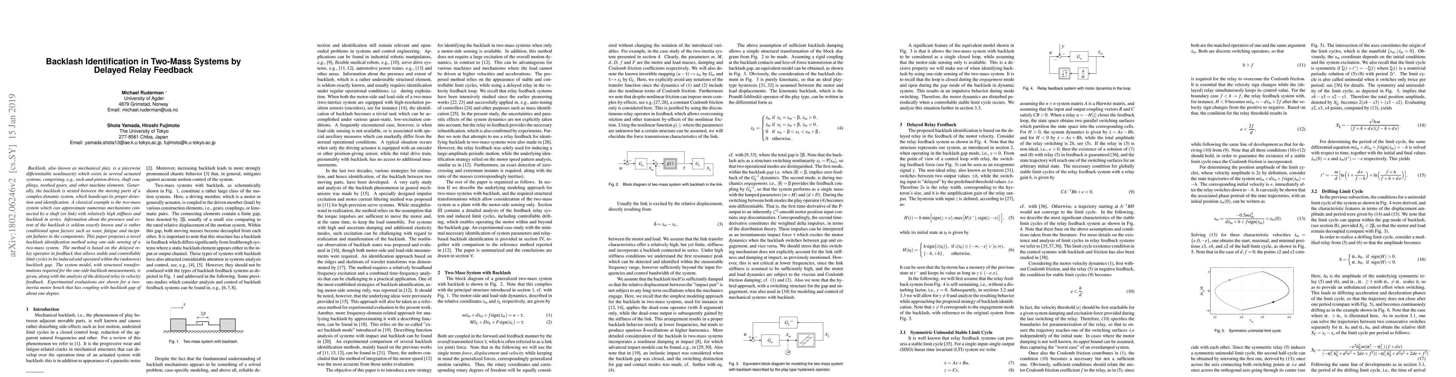 This paper proposes a novel method for identifying backlash in two-mass systems using a delayed relay operator in feedback, enabling stable limit cycles within the unknown backlash gap. Experimental results demonstrate the effectiveness of the method on a two-inertia motor bench with a measurable backlash.