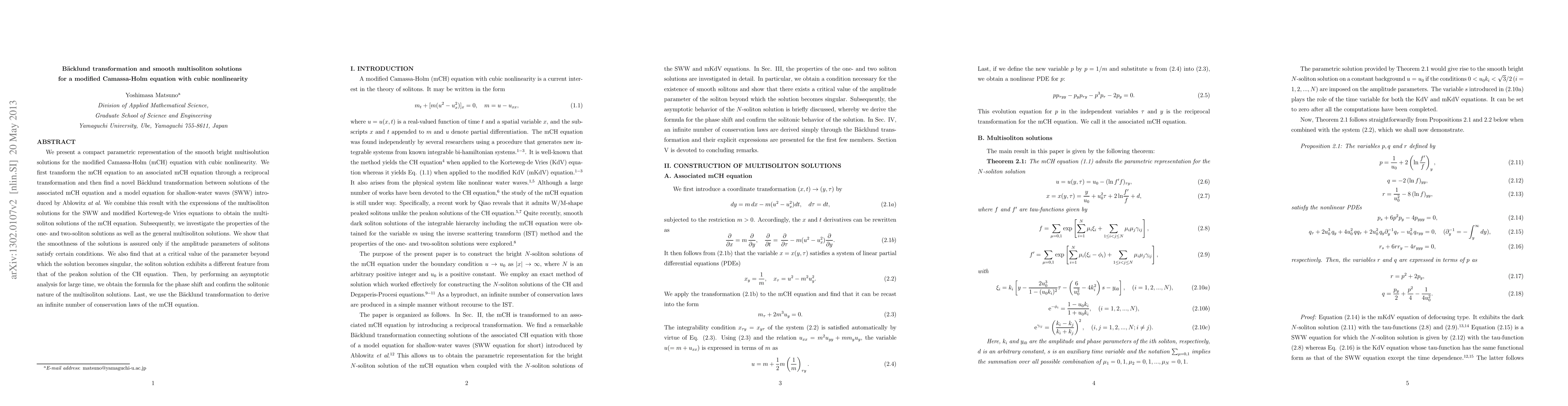 This paper presents a novel Bäcklund transformation to derive smooth multisoliton solutions for the modified Camassa-Holm equation with cubic nonlinearity. It also reveals conditions under which these solutions remain smooth and identifies distinct behaviors between soliton and peakon solutions at critical parameter values.