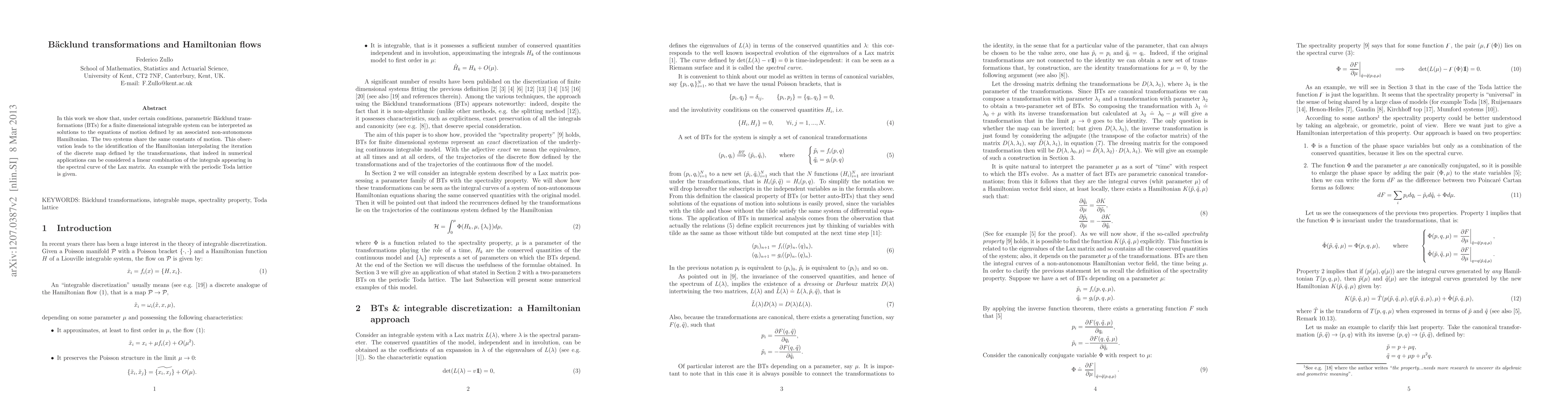 This paper demonstrates that parametric Backlund transformations for a finite-dimensional integrable system can be viewed as solutions to a non-autonomous Hamiltonian system, sharing the same constants of motion. The study identifies a Hamiltonian that interpolates the discrete map defined by the transformations, applied to the Toda periodic lattice.