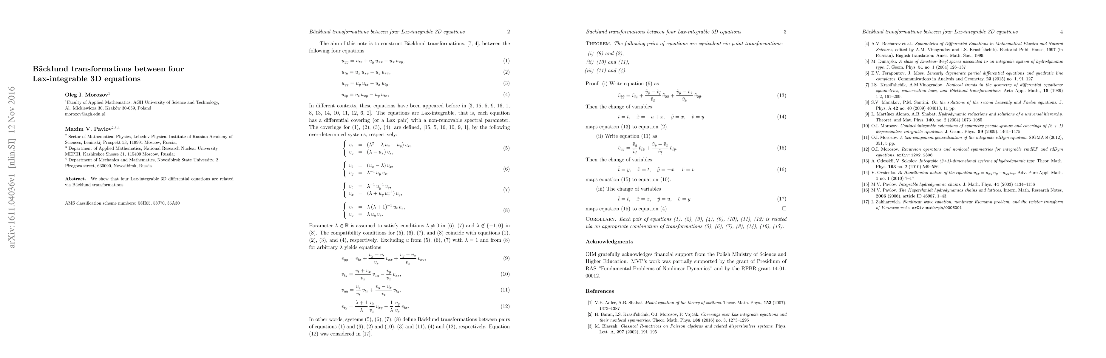 Summary: This paper demonstrates the connections between four Lax-integrable three-dimensional differential equations through Bäcklund transformations, illustrating their inter-relationships.