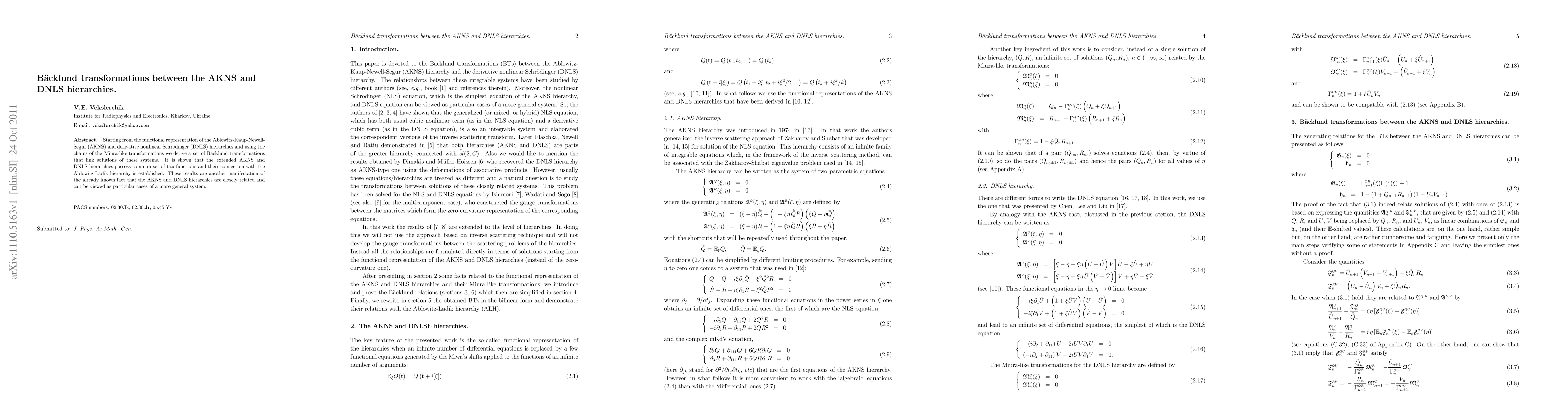This paper derives Bäcklund transformations linking solutions of the AKNS and DNLS hierarchies using Miura-like transformations, showing a shared set of tau-functions and a connection with the Ablowitz-Ladik hierarchy, reinforcing the close relationship between these hierarchies.
