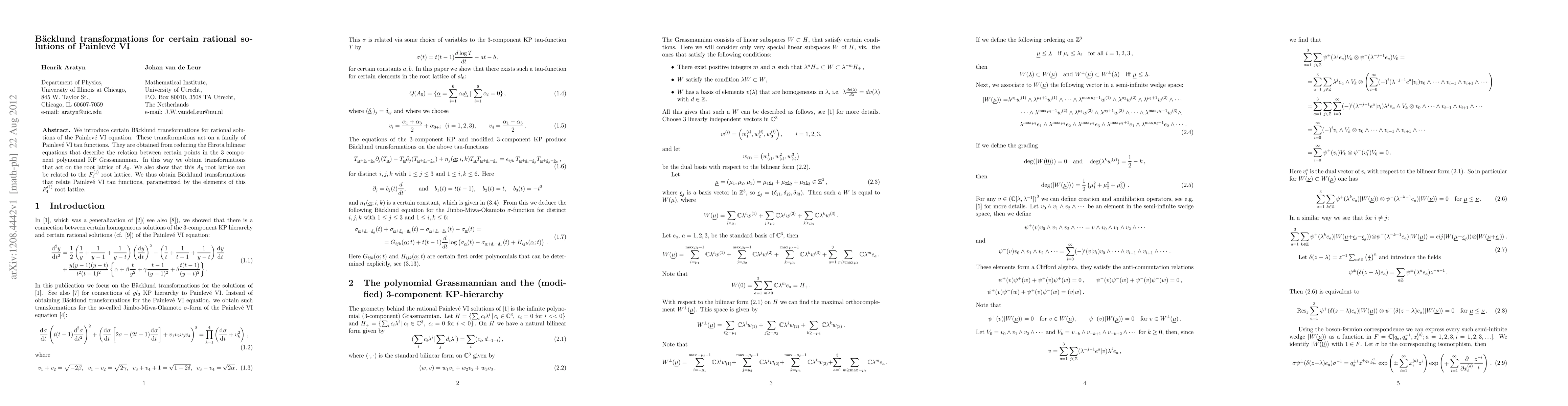 This paper introduces Backlund transformations for rational solutions of the Painlevé VI equation, obtained by reducing Hirota bilinear equations linked to the 3-component polynomial KP Grassmannian. These transformations relate the sl(6) root lattice to the $F_4^{(1)}$ root lattice, providing transformations that connect Painlevé VI tau functions.
