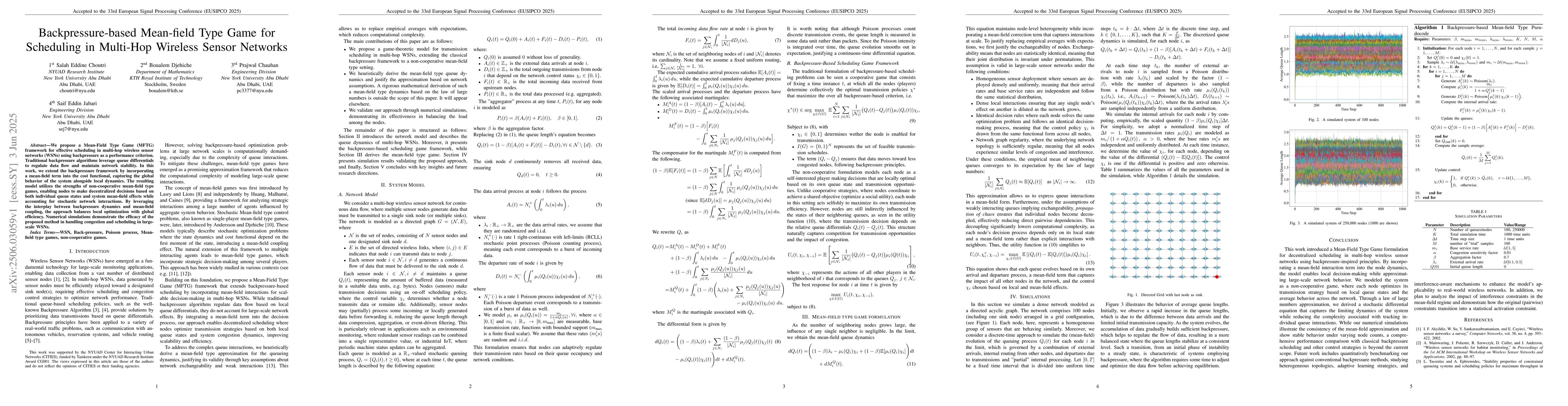 This work differentiates itself by combining mean-field game theory with backpressure algorithms, enabling decentralized decision-making in WSNs that considers both individual queue states and system-wide effects.
