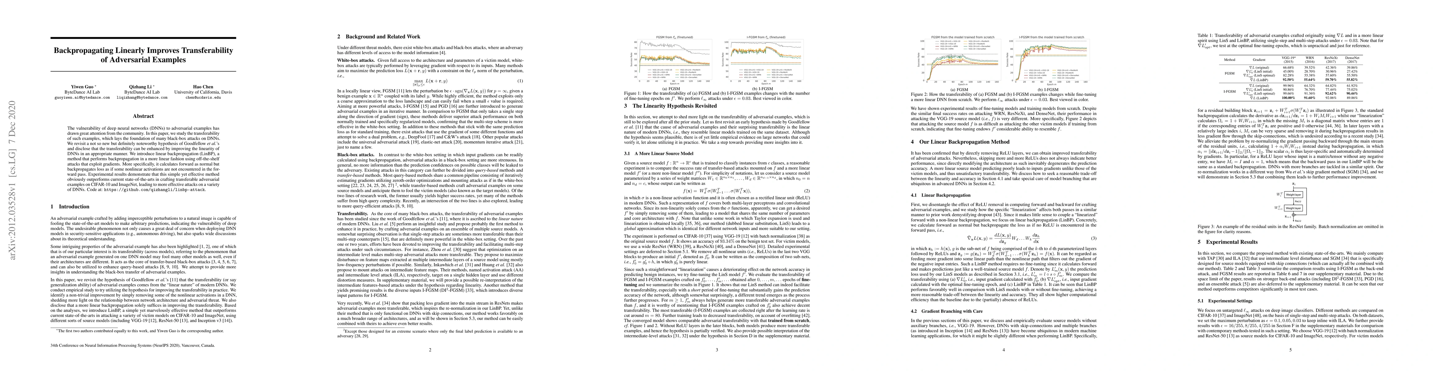 Researchers improve transferability of adversarial examples in deep neural networks by linearizing backpropagation, outperforming current state-of-the-art methods on CIFAR-10 and ImageNet.