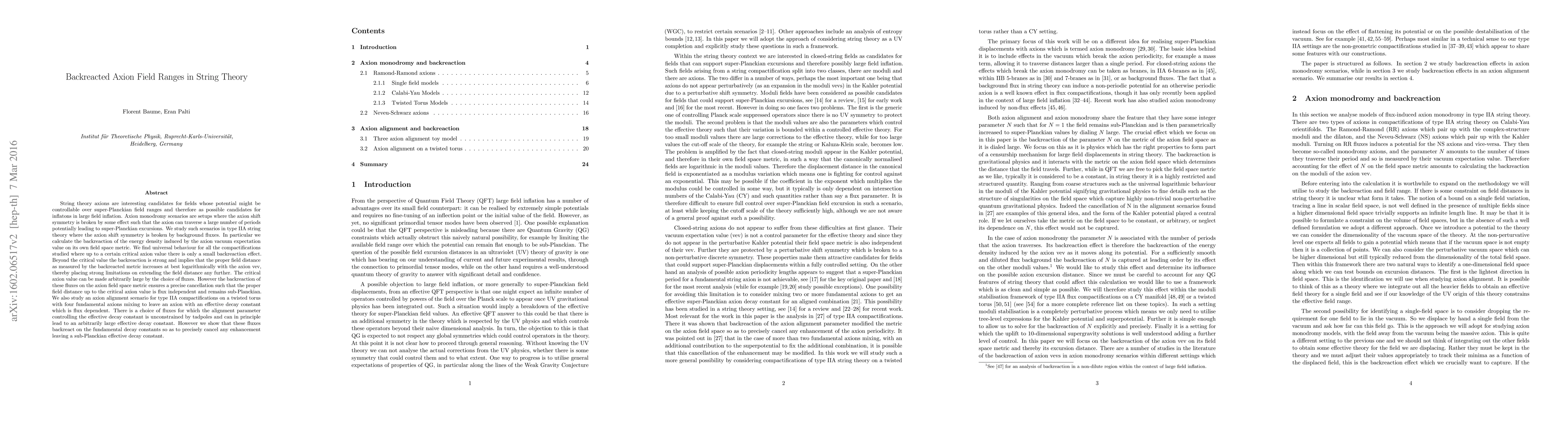 This paper explores backreacted axion field ranges in type IIA string theory, showing that while large axion field excursions are possible, strong backreaction limits further field distance extension. Fluxes ensure proper field distance remains sub-Planckian and cancel enhancements in effective decay constants.
