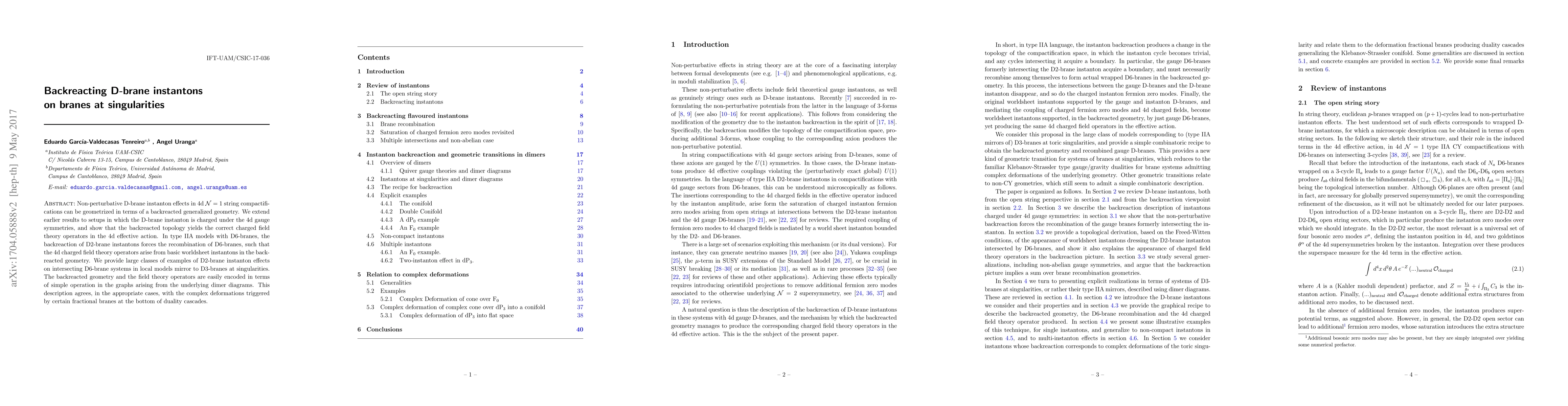 This research explores the effects of D-brane instantons in 4d N = 1 string compactifications, showing that their backreaction can be described by a generalized geometry. It demonstrates how these instantons, charged under 4d gauge symmetries, lead to the correct charged field theory operators in the effective action, particularly in type IIA models with D6-branes.